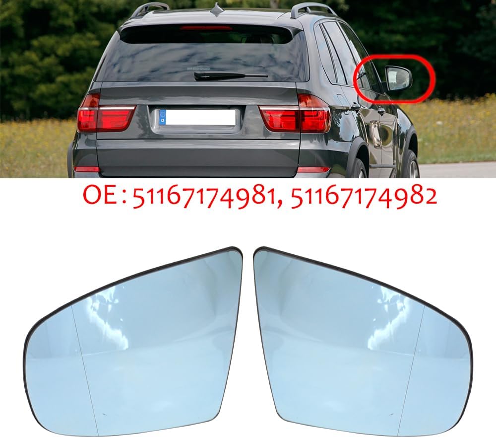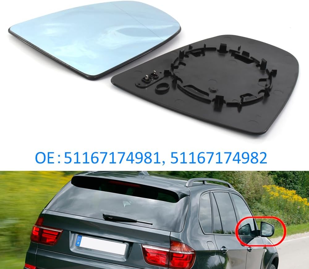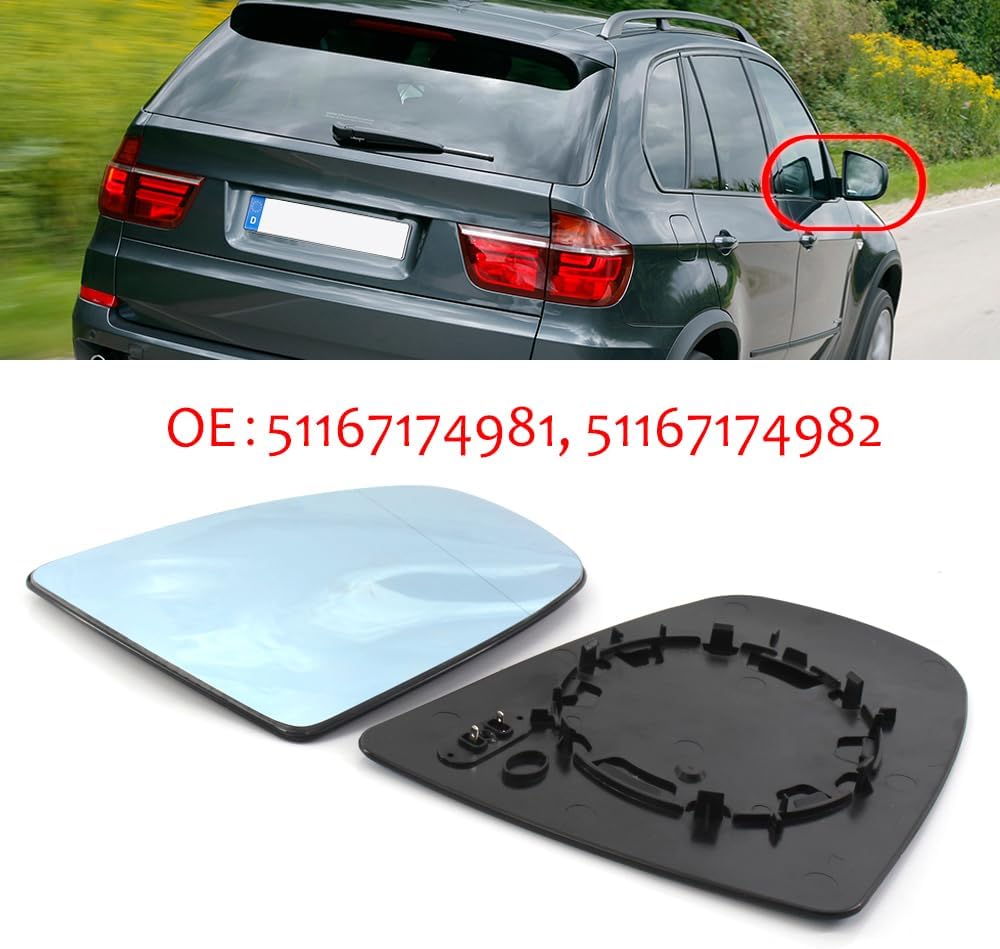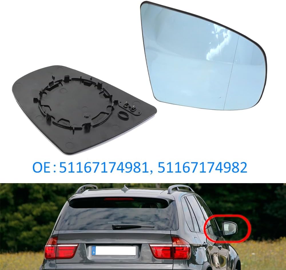 قم بقياس الزجاج البديل للمرآة الجانبية: مقاس مرآة الرؤية الخلفية 20*17*3 سم. رقم جزء الشركة المصنعة، اليسار: 51167174981، اليمين: 51167174982.