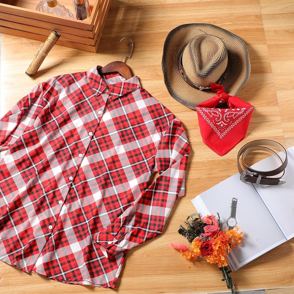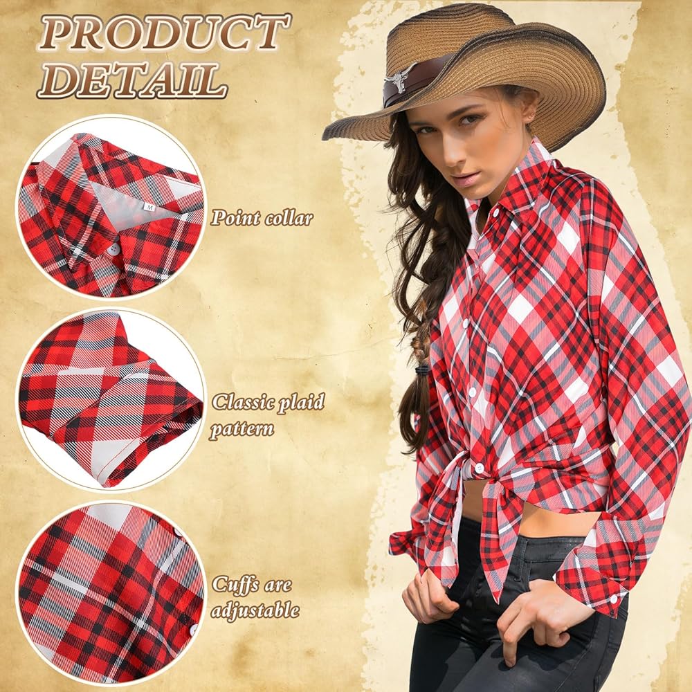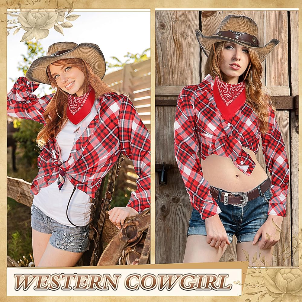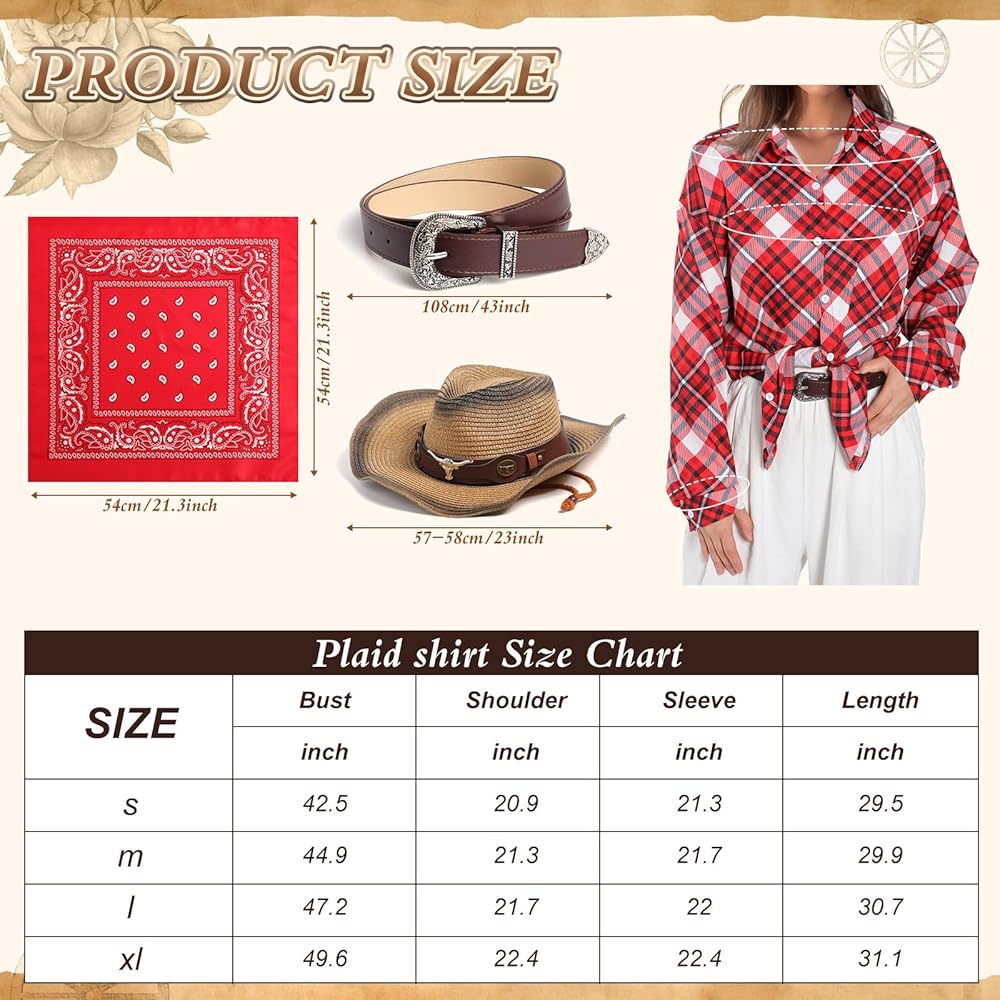• زي راعية البقر الغربية: يتضمن زي راعية البقر قميصًا كلاسيكيًا منقوشًا، وقبعة رعاة البقر الغربية، وحزام ومنديل بيزلي، إجمالي 4 قطع، المزيج الجميل يمكن أن يلبي احتياجاتك في ملابس الهالوين والحفلات الغربية.