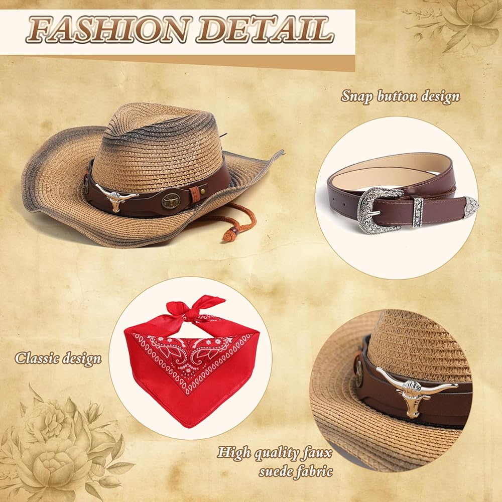 • سهلة الملاءمة: الملابس الغربية للنساء راعية البقر مصممة على طراز رعاة البقر الغربي الكلاسيكي؛ يمكنك ارتداء هذه الملحقات معًا أو بشكل منفصل لتتناسب مع زي الهالوين الآخر الخاص بك، ويمكنك أيضًا مشاركة هذه الملابس الغربية مع الآخرين