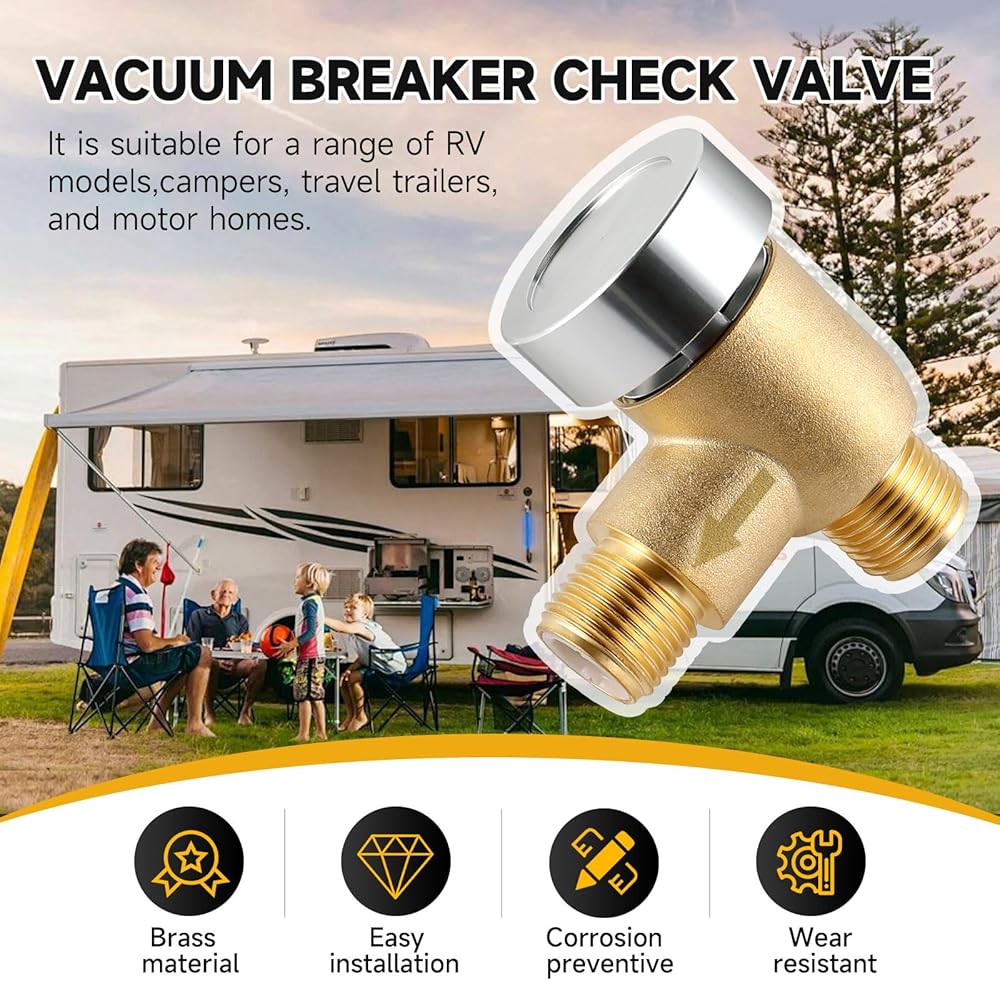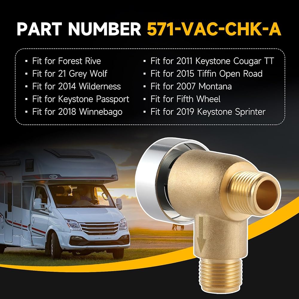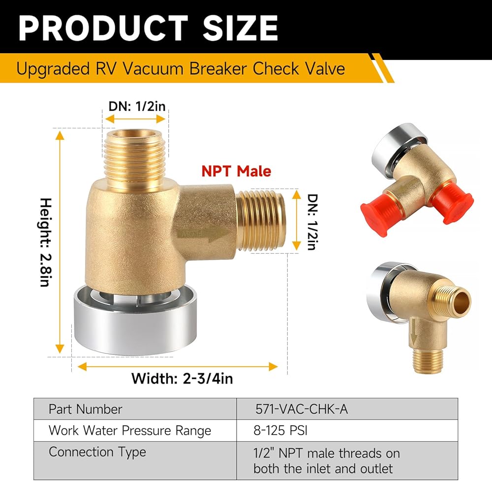 ✎【New Upgrade】571-VAC-CHK-A RV vacuum breaker check valve provides higher durability. With one-piece spool design, it improves sealing and working noise while maintaining high sensitivity to water pressure, ensuring normal water safety and long-lasting performance, allowing you to travel with peace of mind.