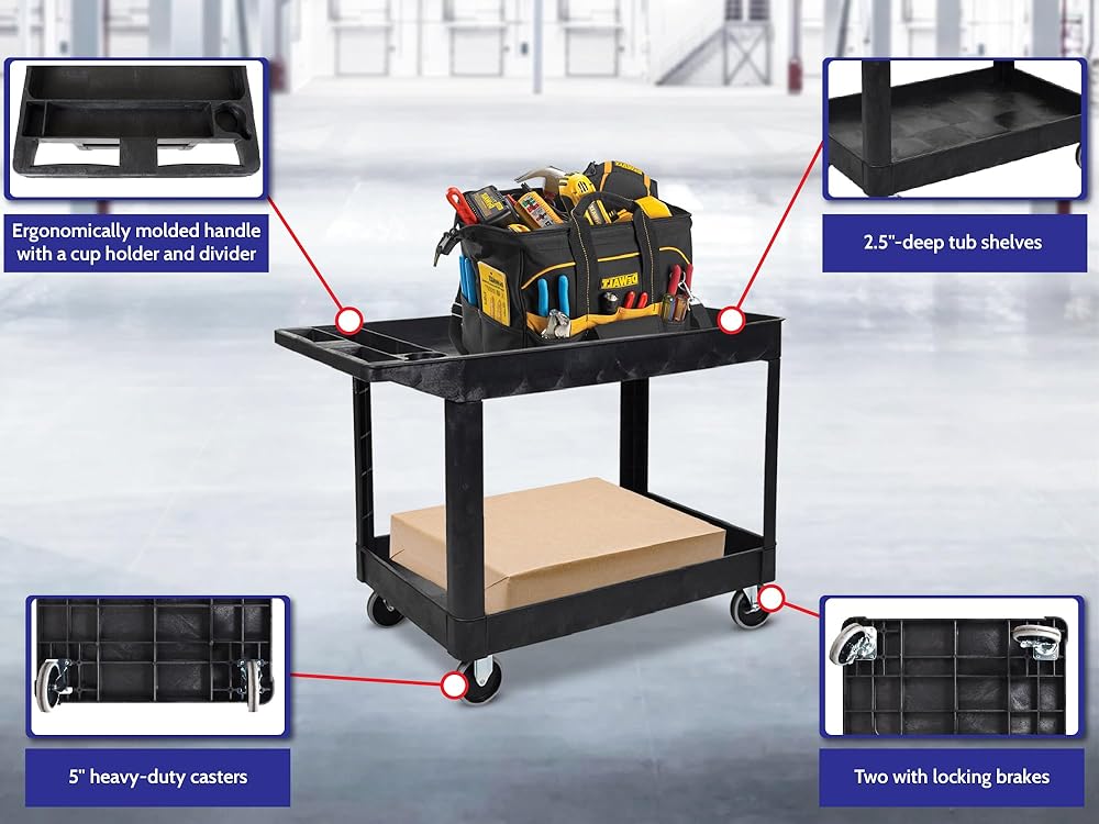 عربة المرافق الثقيلة ذات الرفين من لوكسور XLC11-B، باللون الأسود
