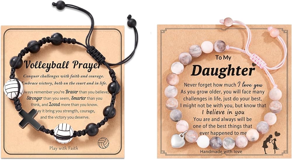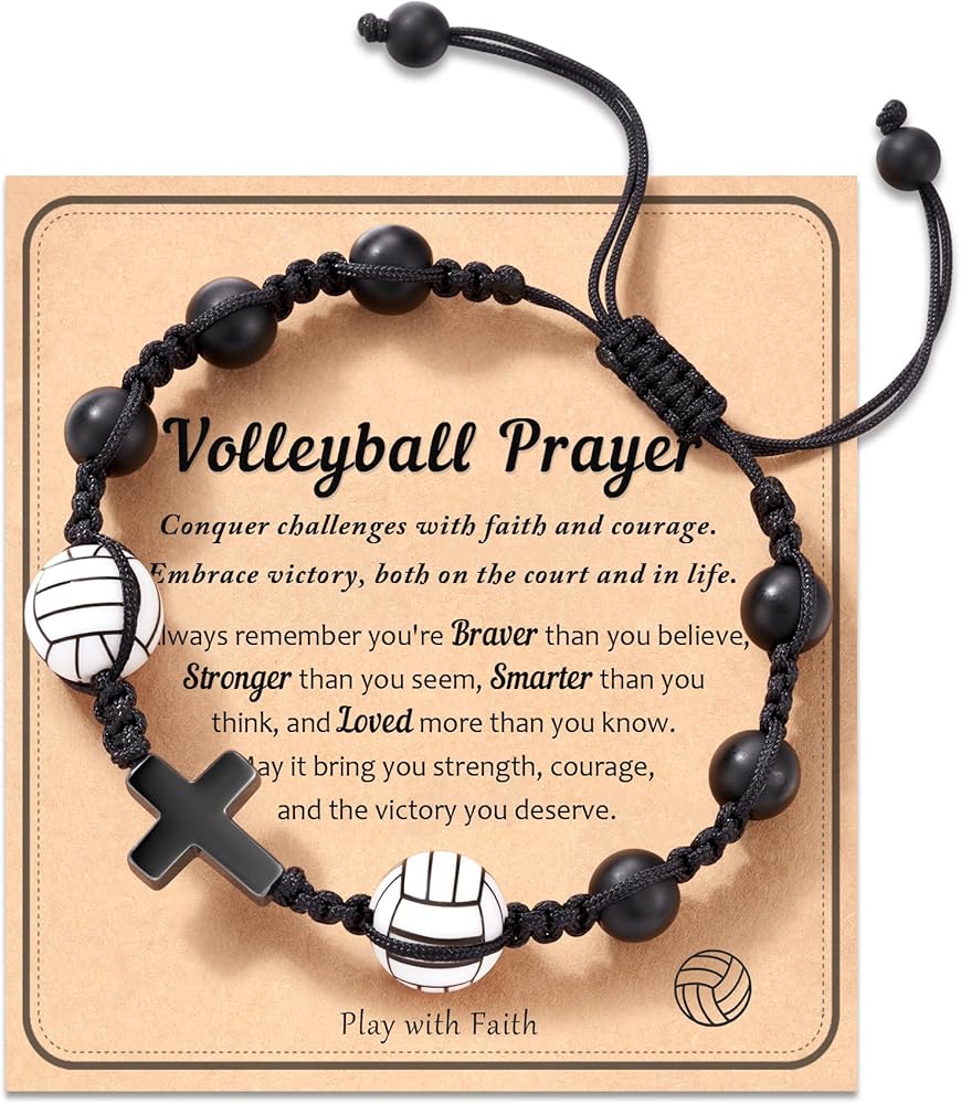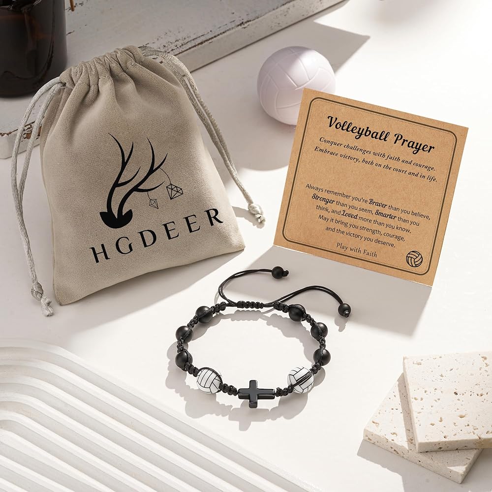 Christmas Gifts for Girls 8-12 - The Volleyball bracelet is made of 8mm natural black agate stone, which helps to release stress and keep a good mood