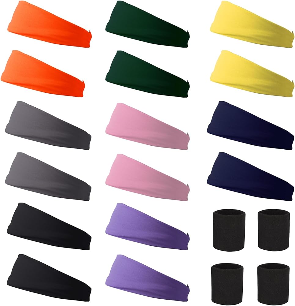 EEEKit 16 قطعة عصابات رأس للتمرين للنساء والرجال، عصابات رأس للرجال، عصابات رأس غير قابلة للانزلاق فتل وسريعة الجفاف مع 4 أساور معصم للياقة البدنية والجري واليوجا والتمارين الخارجية