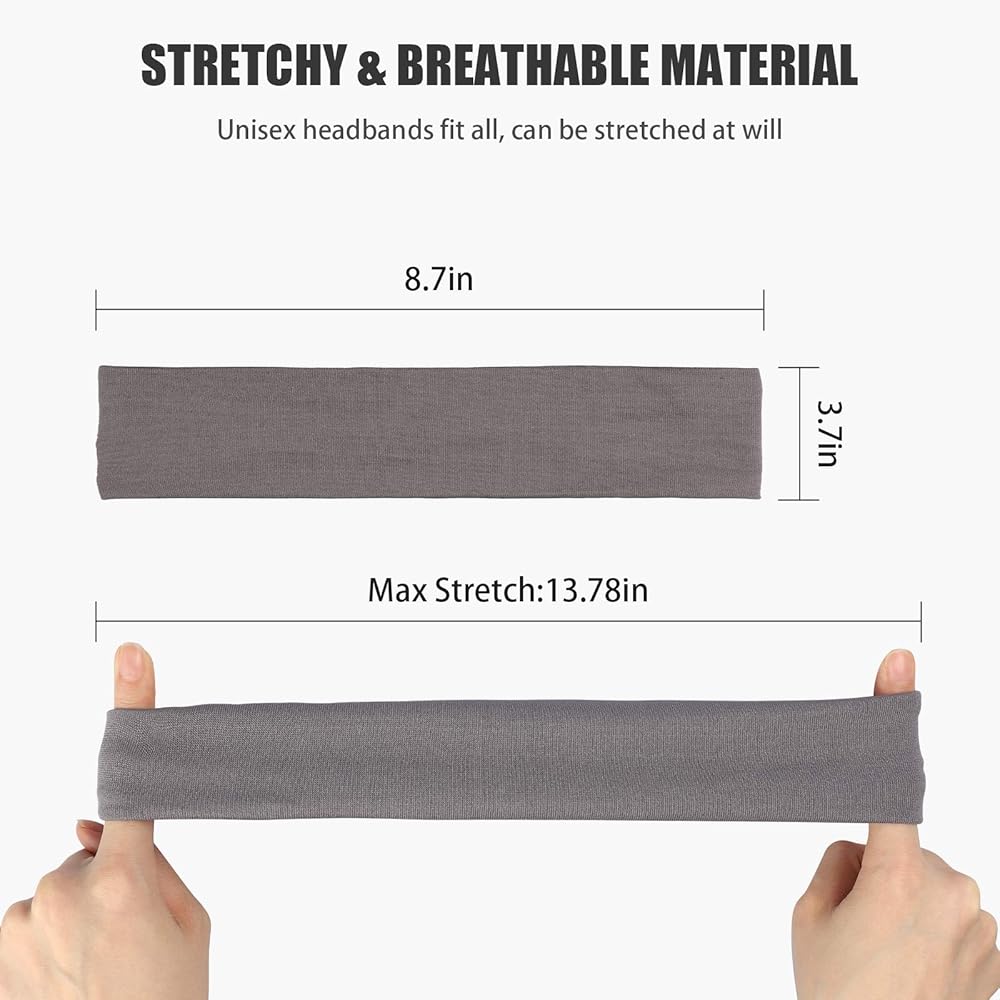 مقاس واحد يناسب الجميع: عصابة رأس للعرق مناسبة للرجال والنساء. مصنوع من قماش مطاطي متوسط الوزن يتمدد بشكل جيد عند سحبه، لذلك لن تشعر بضيق شديد أو فضفاض جدًا.