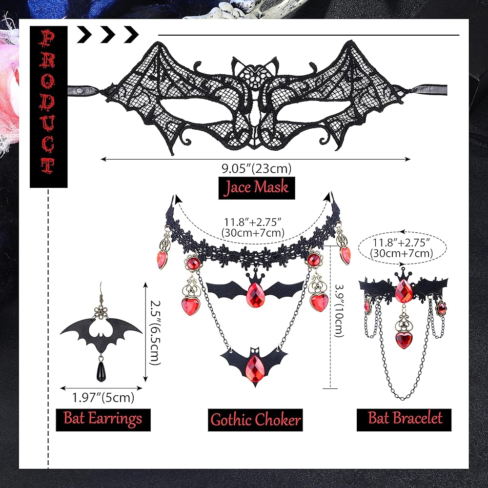 مناسبات مختلفة قابلة للتطبيق: مجموعة مجوهرات الخفافيش ذات الطراز القديم مناسبة للحفلات التنكرية أو الحفلات التنكرية أو حفلات الزفاف أو حفلات الهالوين أو العروض المسرحية أو غيرها من المناسبات الخاصة. سواء كان زيًا تنكريًا مبالغًا فيه أو زيًا كاجوال، فهو مثالي لمجموعة متنوعة من أنماط الملابس المختلفة.