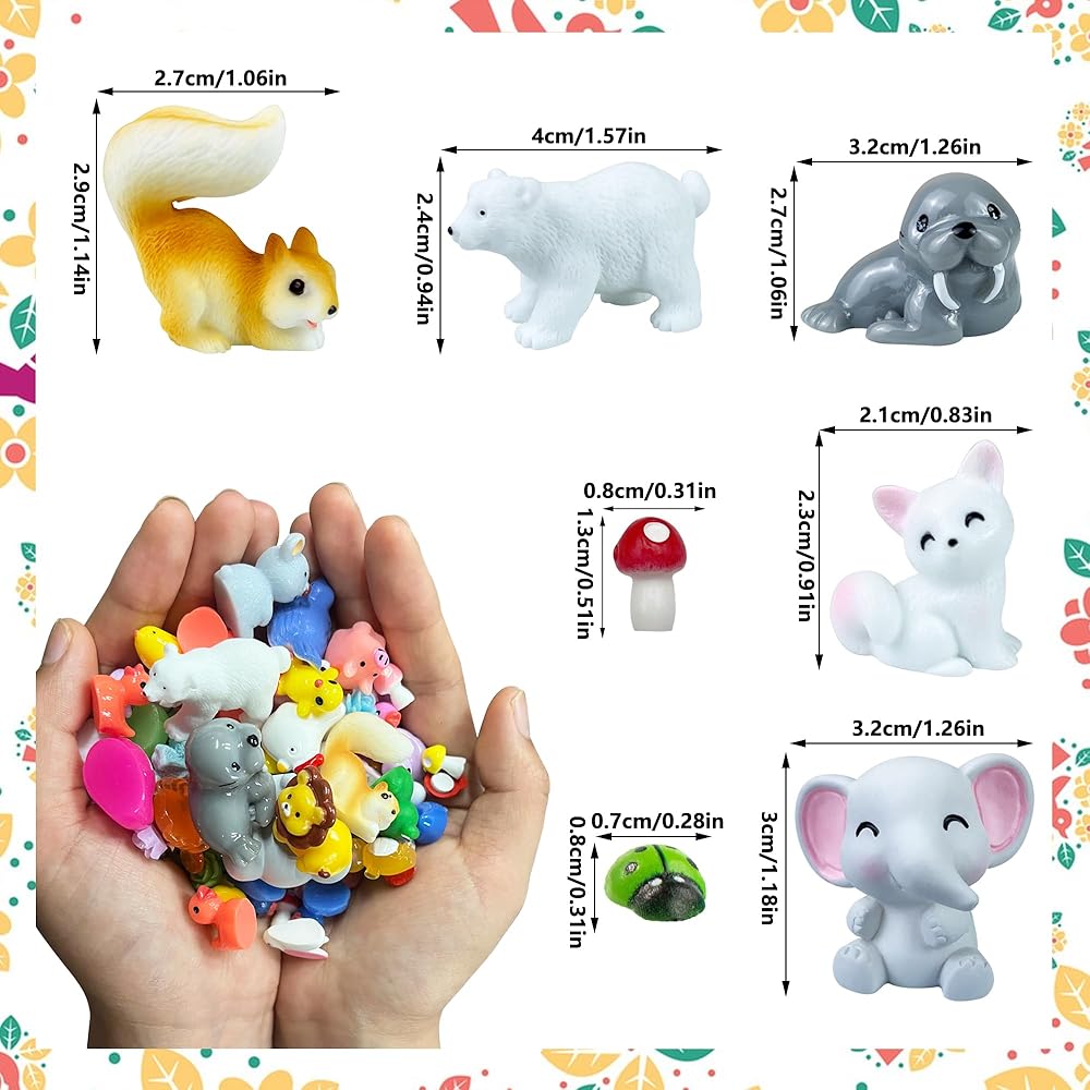 SIZE-They have different sizes and are small and cute. The mini animals are cute and can be used for decoration or DIY as an accessory.