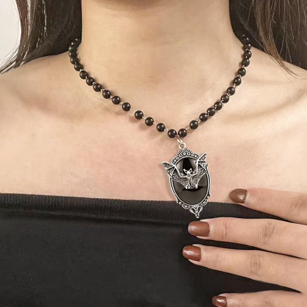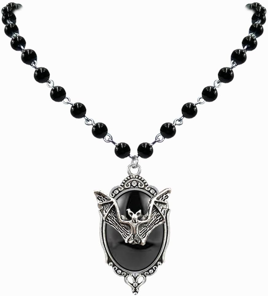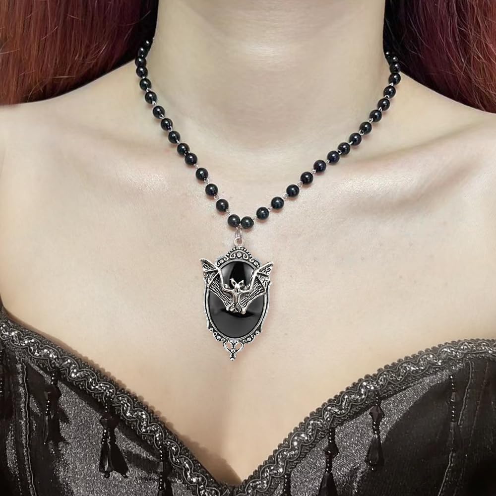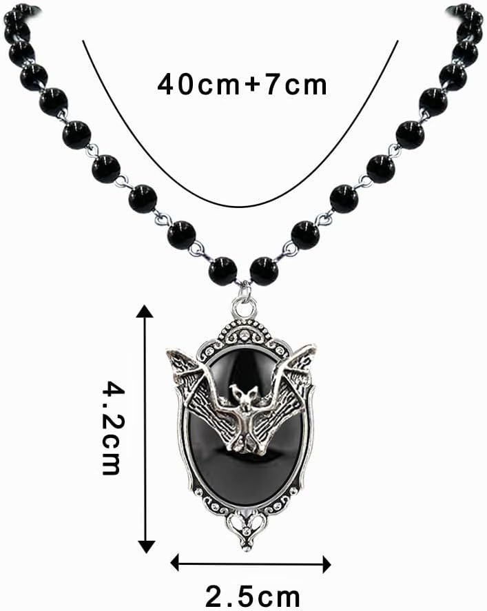 Bat Cameo Beads Necklace:In some witch traditions, bats are seen as guides to the spiritual world, representing powers beyond the material world, and are associated with the mystical practices and occult knowledge of witches. As such, bats often symbolize spiritual symbols of transformation, acceptance of change and the search for renewal in witch cultures.