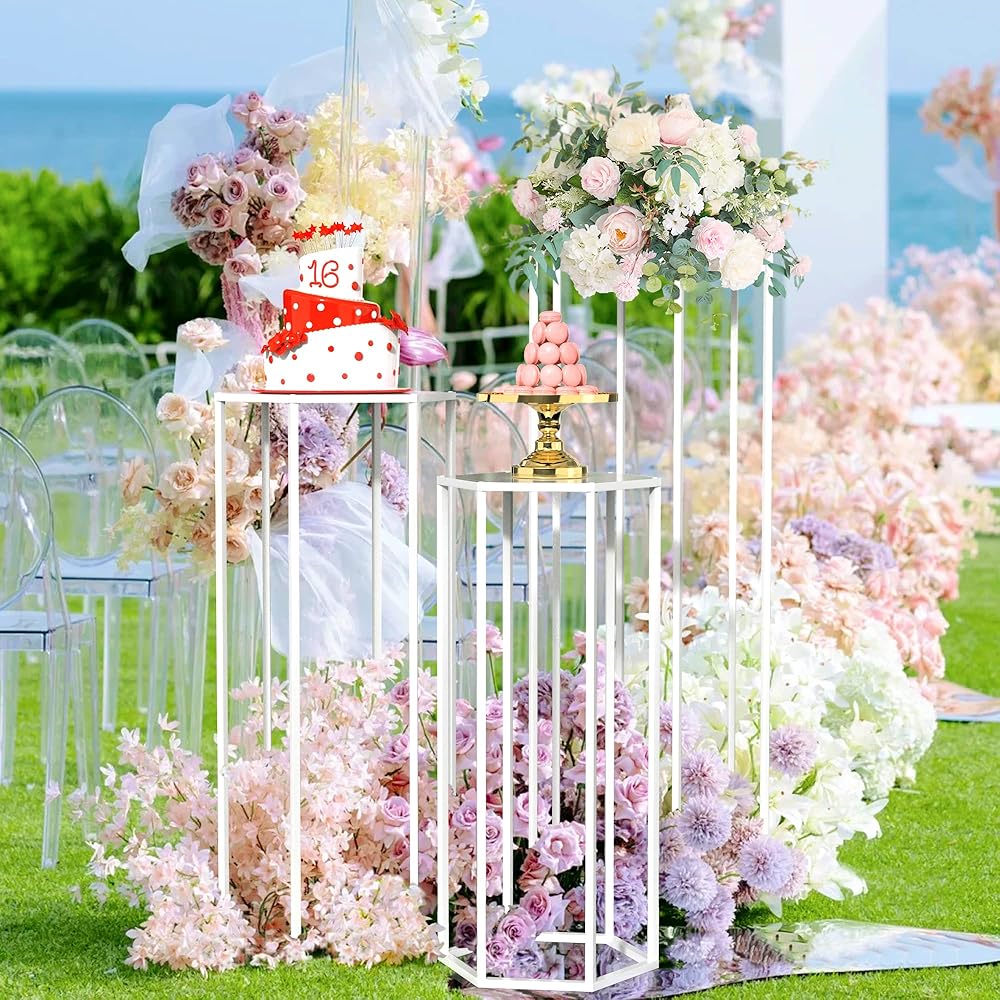 【سهلة التجميع】يمكن تجميع حامل الأسطوانة للحفلات بسهولة باستخدام البراغي. سيكون المظهر السداسي الأنيق رائعًا لعرض ديكور حفلتك، أو المزهريات ذات القاعدة، أو القطع المركزية، أو الكرات الخضراء، أو باقات الزهور أو غيرها من اللمسات الزخرفية.