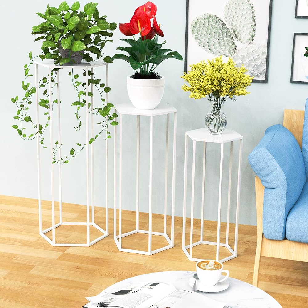 【تصميم عصري】يمكن استخدام الشكل السداسي الهندسي للأسطوانات المعدنية لتزيين الحفلات كحامل قاعدة أو حامل زهور الزفاف أو حامل فني. يمكن للتصميم السفلي المجوف لحامل القاعدة الذهبية أيضًا تخزين بعض العناصر الصغيرة والمساحات الخضراء، وهو أمر عملي وجميل.