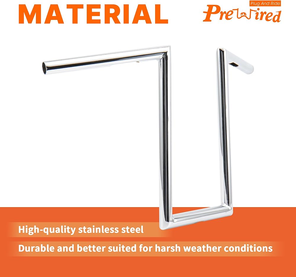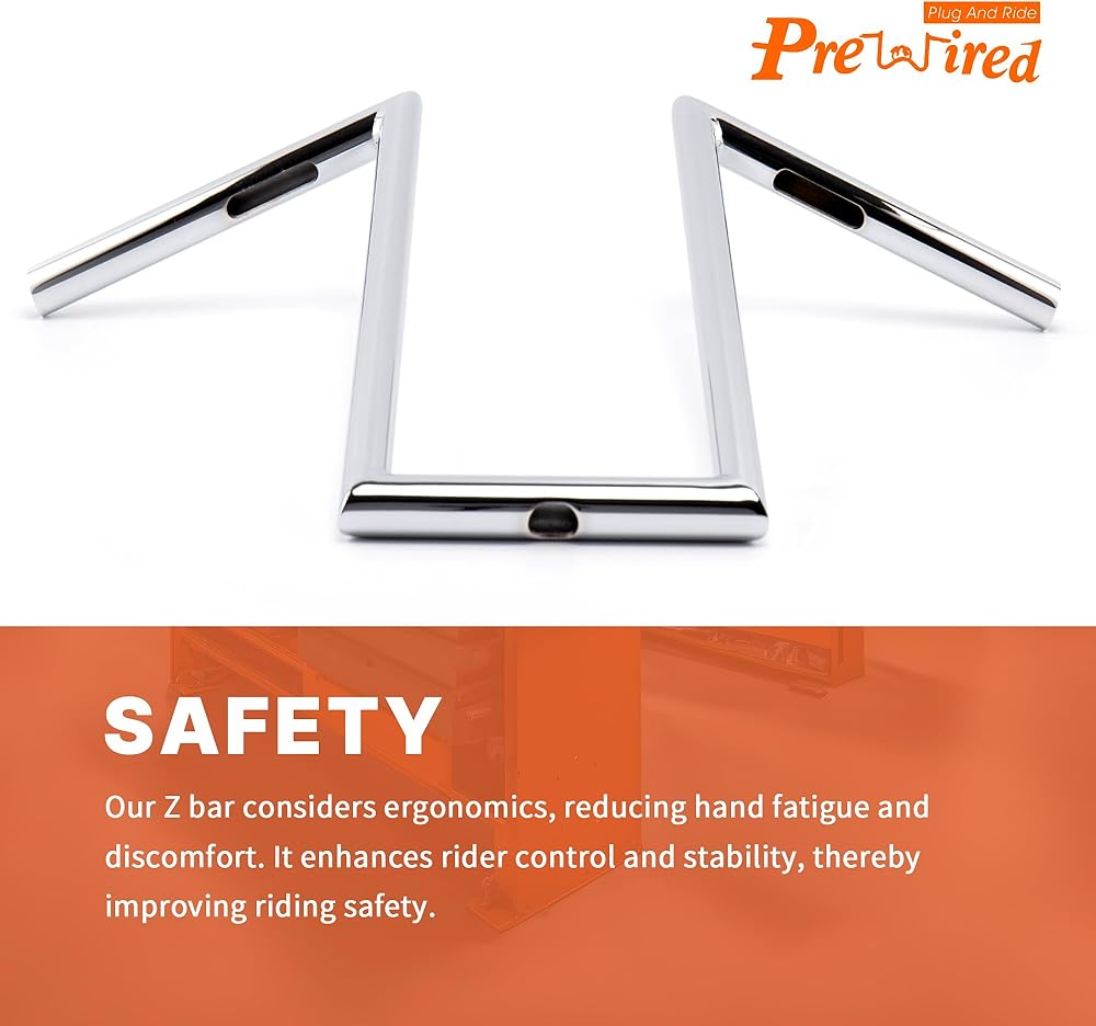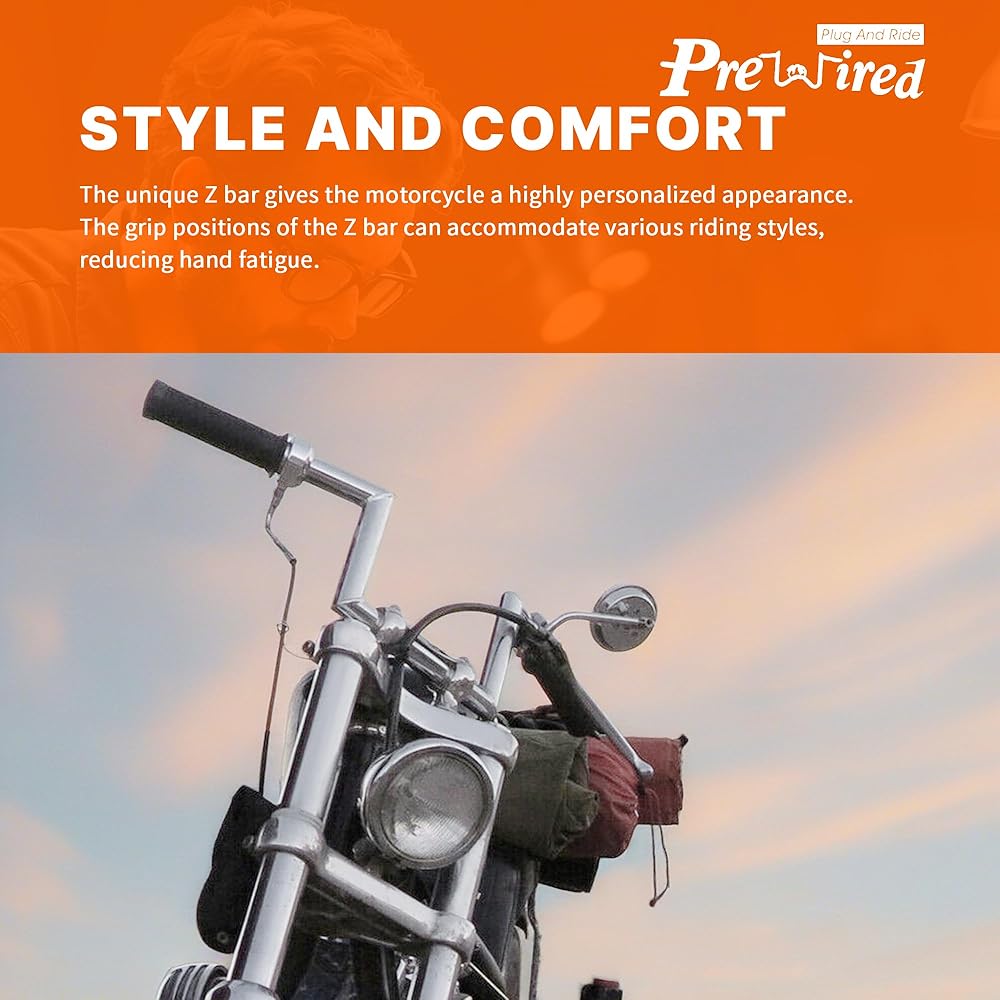 • التقليد الكلاسيكي: لقد التزمنا دائمًا بتصميم مقود الدراجات النارية الكلاسيكي. يظل تصميم Z-Bars هذا وفيًا لأسلوب Harley التقليدي، مما يجذب الدراجين الذين يقدرون المظهر الكلاسيكي.