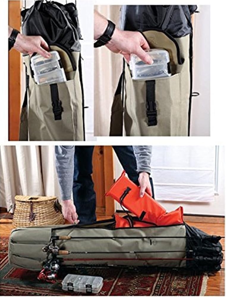 1. يمكن أن تحمل حقيبة صنارة الصيد 5 صنارة وبكرات في الجيوب الخارجية للحقيبة.
