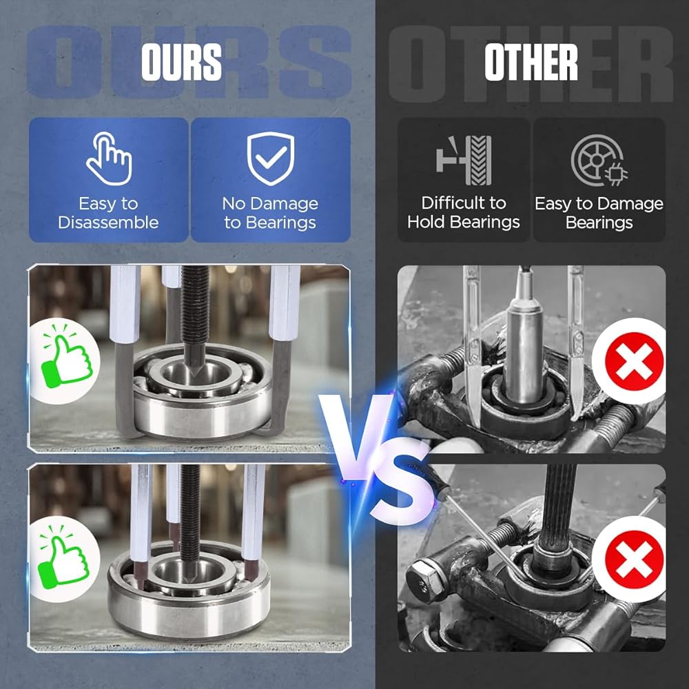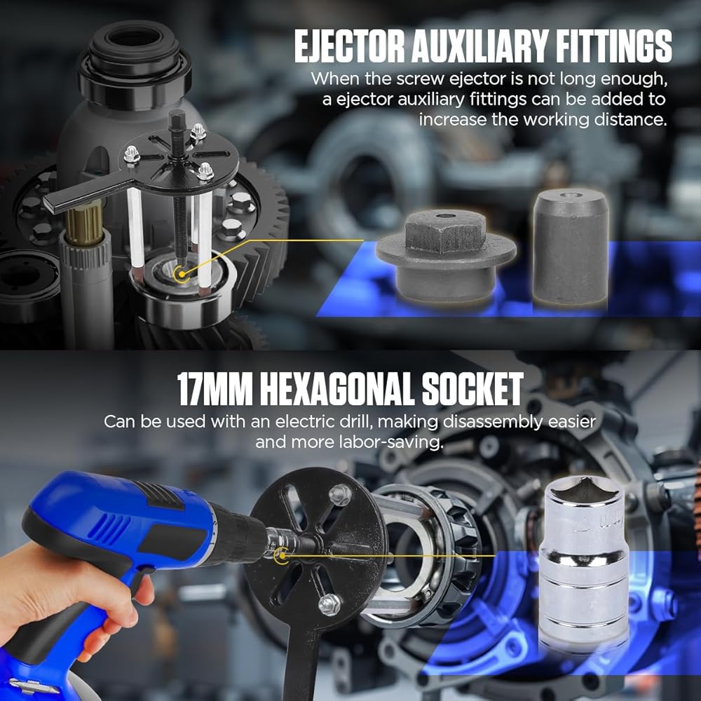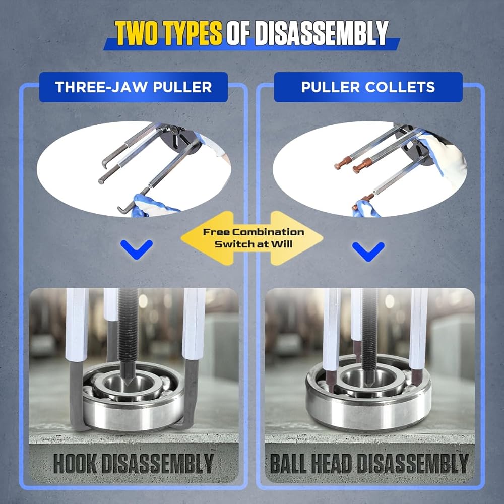 【سحب محمل متعدد الوظائف - داخلي/خارجي】مجموعة سحب المحامل الخاصة بنا قوية، عندما لا تزال تعاني من الصداع بسبب عدم القدرة على حمل المحامل بالأدوات التقليدية، يمكن لساحب المحامل الخاص بنا أن يمسك المحامل بقوة من الداخل أو من الداخل. في الخارج، أي يمكن تفكيك المحامل بواسطة كوليت مجتذب مجهز أو مجتذب 3 فك. أثناء عملية الاستخراج بأكملها، يطبق ساحب المحمل قوة موحدة، مما يقلل من خطر تلف المحمل والإسكان.