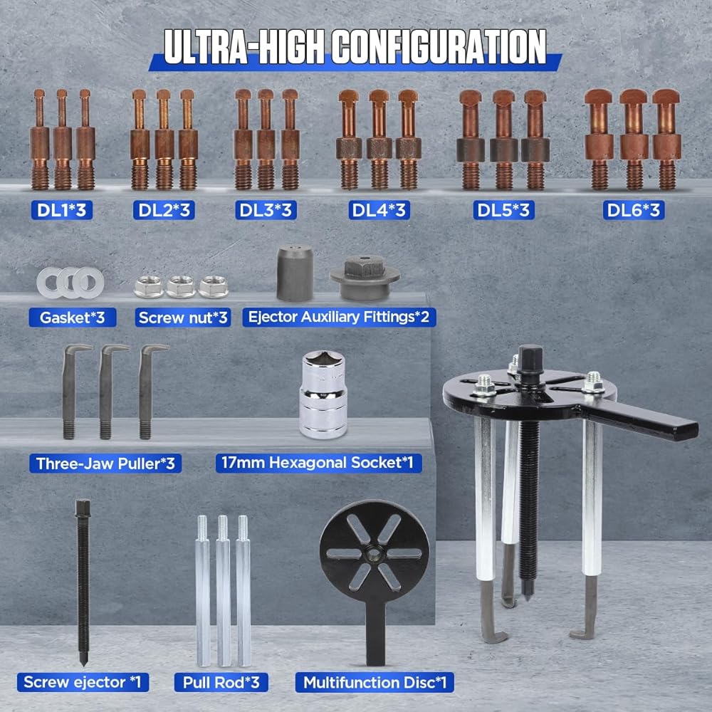 【تفاصيل التغليف وضمان لمدة 3 سنوات】تأتي مجموعة أدوات سحب المحمل مع مجموعة كاملة الوظائف، العبوة تشتمل على: DL1/DL2/DL3/DL4/DL5/DL6 كل منها *3؛ سحب قضيب * 3؛ التركيبات المساعدة للقاذف*1؛ قرص متعدد الوظائف*1؛ 17 مللي متر مقبس سداسي * 1 ؛ القاذف اللولبي * 1؛ صامولة لولبية *3؛ حشية*3. نحن نقدم ضمانًا لمدة 3 سنوات لمجموعة أدوات سحب المحامل. إذا كانت لديك أي أسئلة أثناء الاستخدام، فلا تتردد في الاتصال بنا.