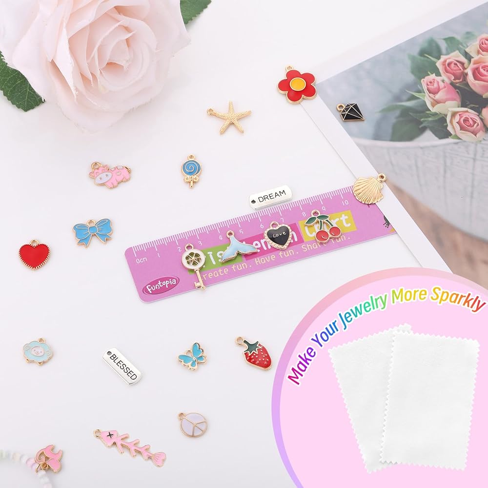 سحر Funtopia لصنع المجوهرات، 310 قطعة سحر المينا الذهبية للأساور قلادة سلسلة المفاتيح صنع القرط، متنوعة لطيف المعلقات المعدنية السائبة للوازم الحرفية DIY