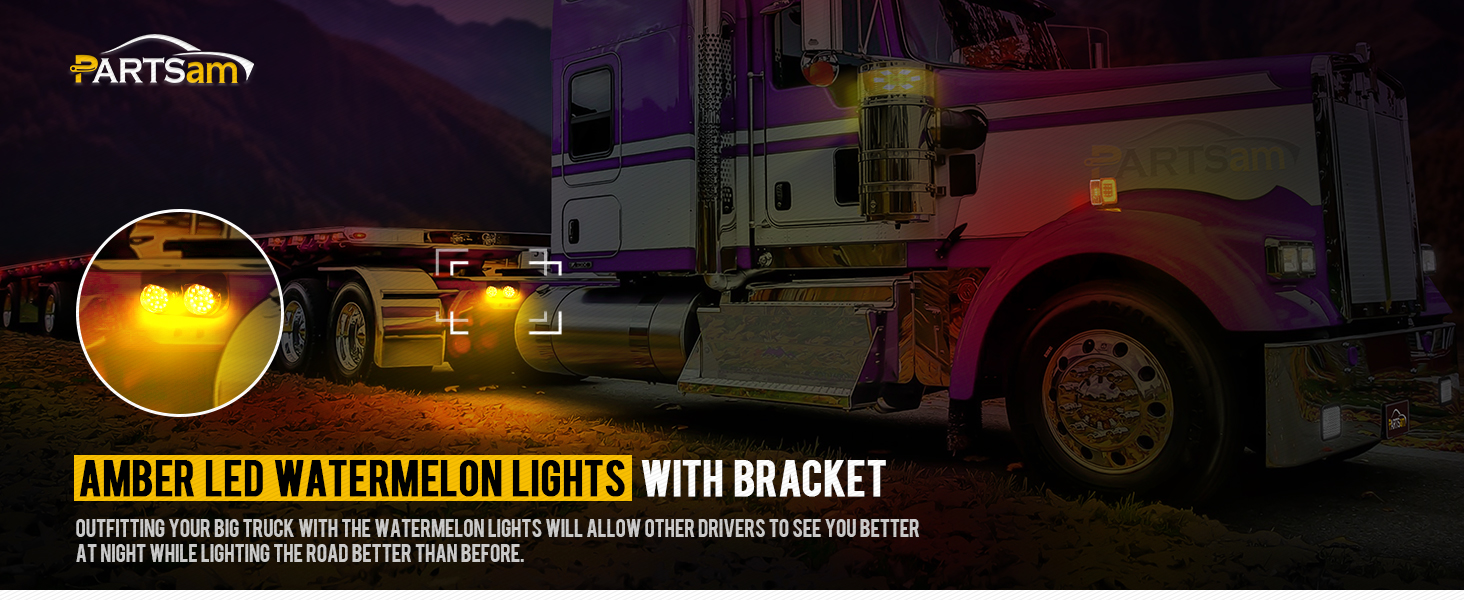[تشمل العبوة] 1x دعامة تثبيت مع قطعتين من ضوء البطيخ. قطع غيار السيارات، العم سام. مصباح LED من PARTSam مع رقائق LED عالية الجودة.