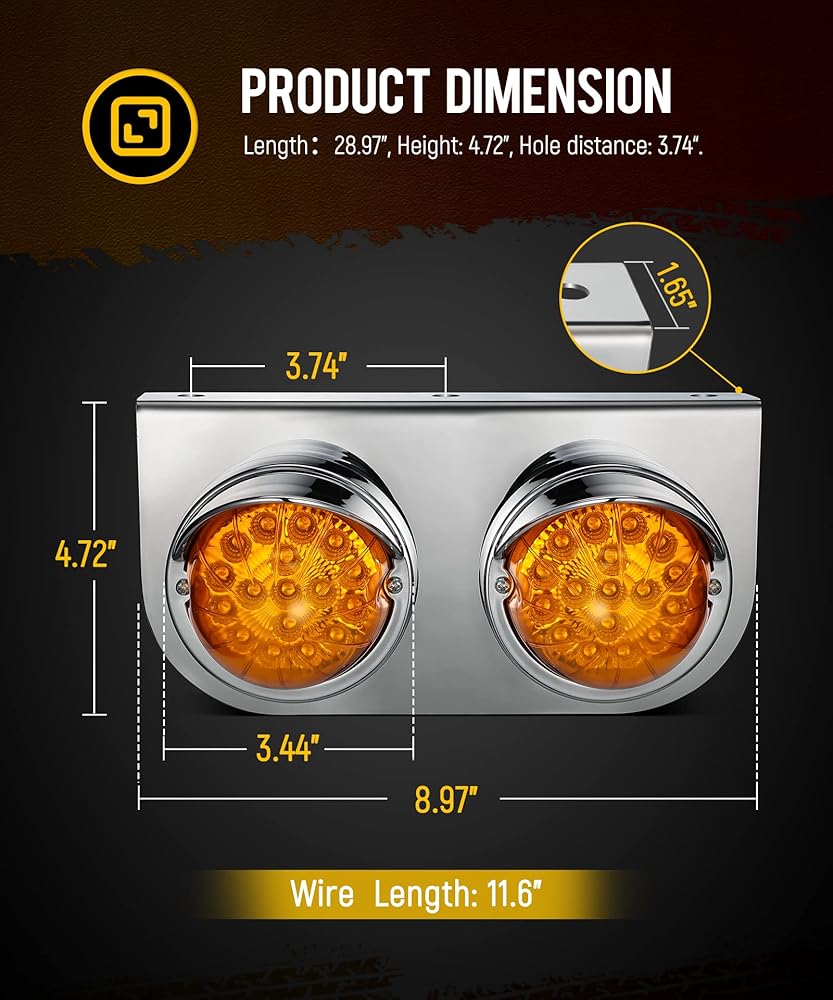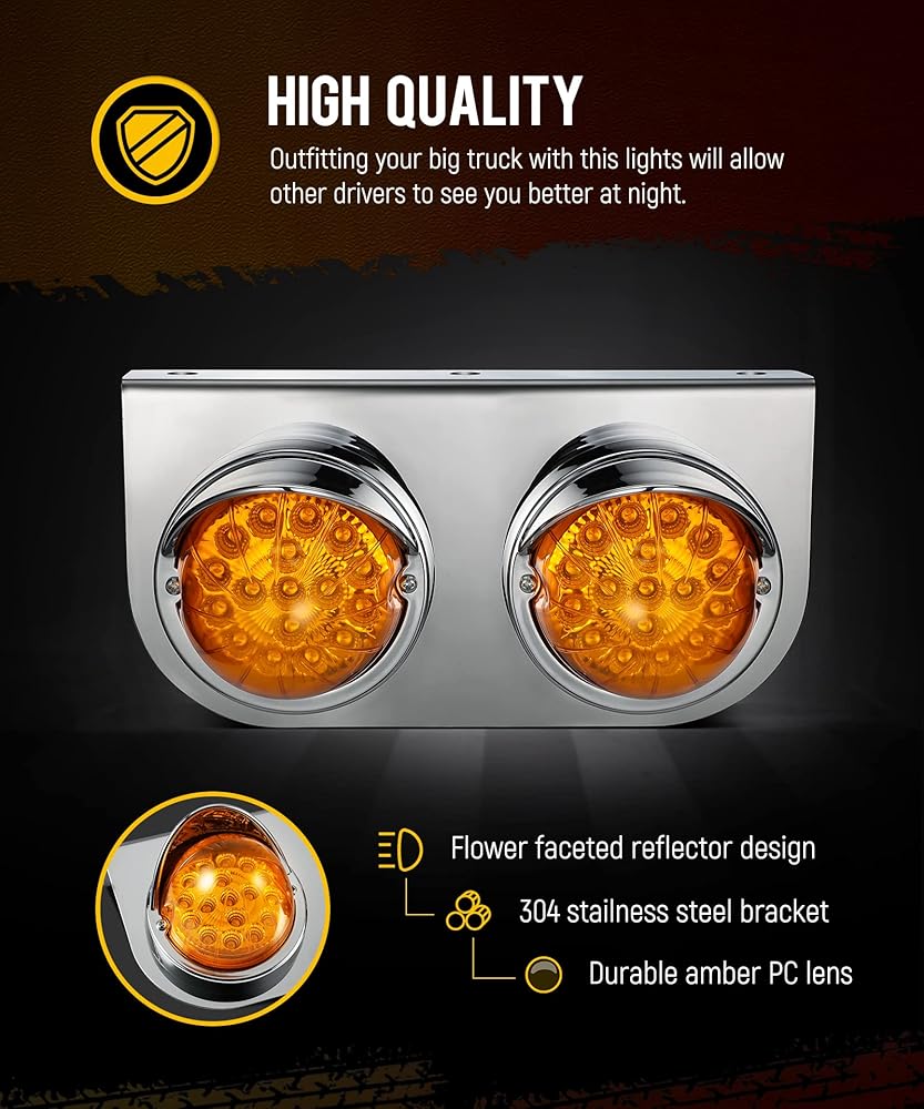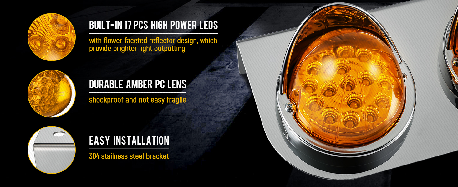 Partsam Amber 17 LED ضوء البطيخ مع دعامة من الفولاذ المقاوم للصدأ، استبدال ضوء إشارة الانعطاف لشاحنات Freightliner Kenworth Peterbilt شبه/الثقيلة، عدسة العنبر LED/العنبر