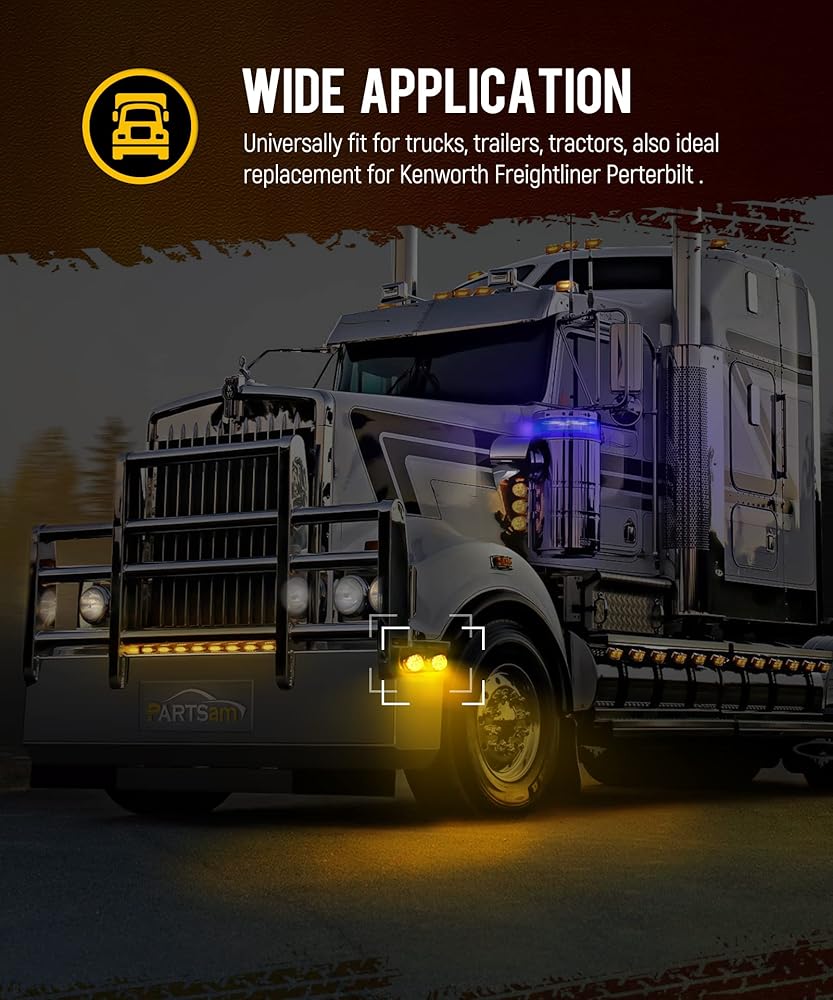 [تطبيق واسع] مصابيح البطيخ الكهرمانية عالمية لمعظم المركبات 12 فولت مثل المقطورات والشاحنات الثقيلة وشبه الشاحنات وما إلى ذلك. استبدال Freightliner Cascadia Century Classic Columbia Coronado FLD Kenworth K100 T2000 T300 T600 T660 T680 T700 T800 W900 Peterbilt 330 335 367 377 378 379 386 387 389 579 587 الدولية 4300 4700 9200 9300 9400 9670 9900 Paystar 5900 Prostar TranStar 8500 8600 Workstar 7600 7700 إلخ