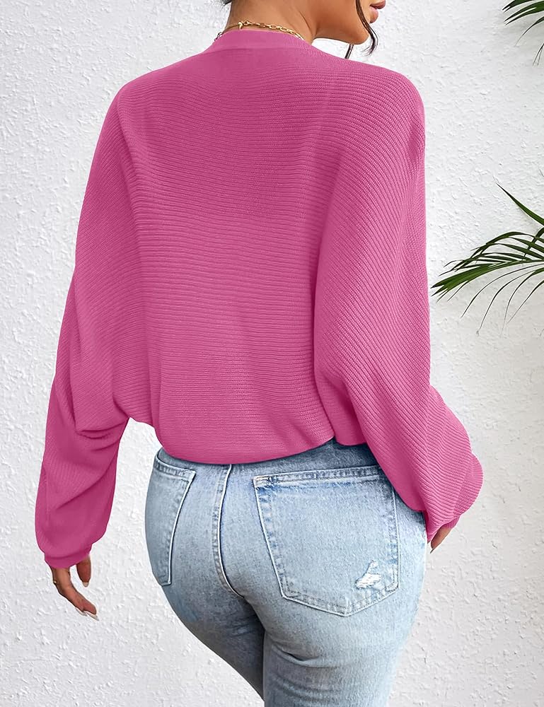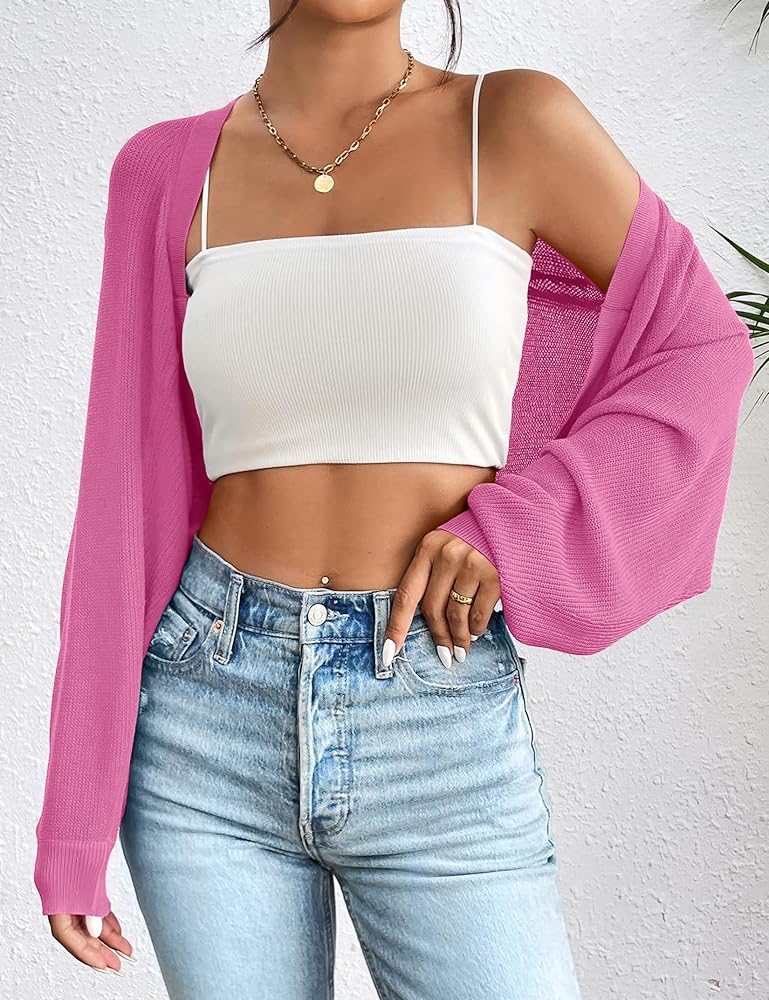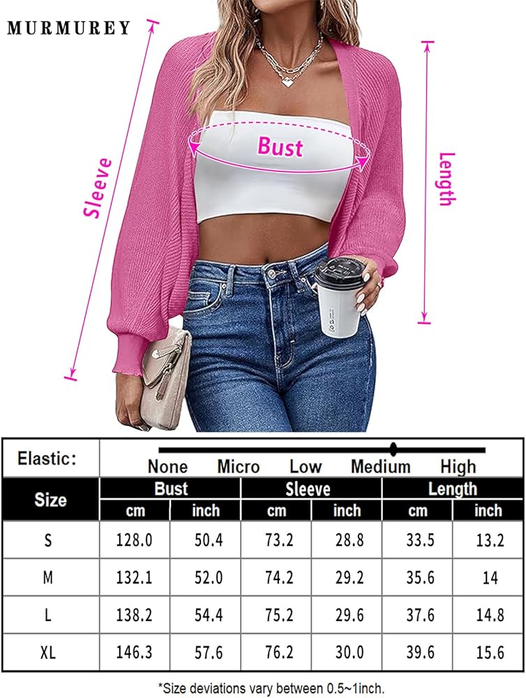 ❀تصميم فريد: سترة محبوكة بأكمام طويلة للنساء، كتف منسدل، قمصان بوليرو للفستان، مقاس فضفاض، ملابس خارجية مضلعة، طول قصير، لون موحد