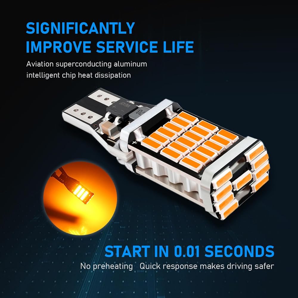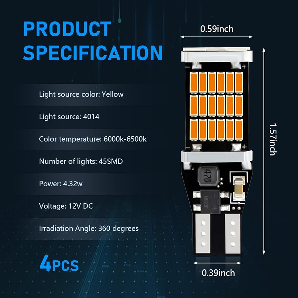 Ajxn 4 PCS T15 Waterproof LED Brake Light, 4014 45SMD 360° Lighting Decoded Infinite High Bright Quick Response Reversing Light, 12V DC Energy Saving Car Turning Light, Fits Most Car Models (White)