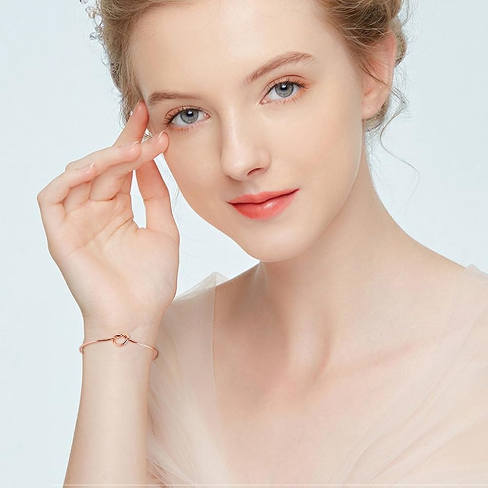 النمط: سوار الكفة بعقدة الحب. سوار هدايا تذكارية مثالي لوصيفات العروس لشكر سيداتك على مساعدتك في ربط العقدة. تحتوي العبوة على 8 قطع من السوار ذو العقدة الذهبية الوردية، كمية كافية تلبي احتياجاتك اليومية