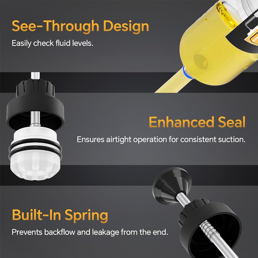 Versatile Applications: This oil extractor pump is not only efficient but also versatile, suitable for a wide range of applications. It is an ideal tool for extracting or changing engine oils and lubricants in various vehicles and machinery, including boats, farm equipment, industrial gearboxes, motorcycles, and motor vehicles. Additionally, it's an effective solution for servicing brake master cylinders, oil filter housings, and differentials, making it a valuable addition to any maintenance toolkit.