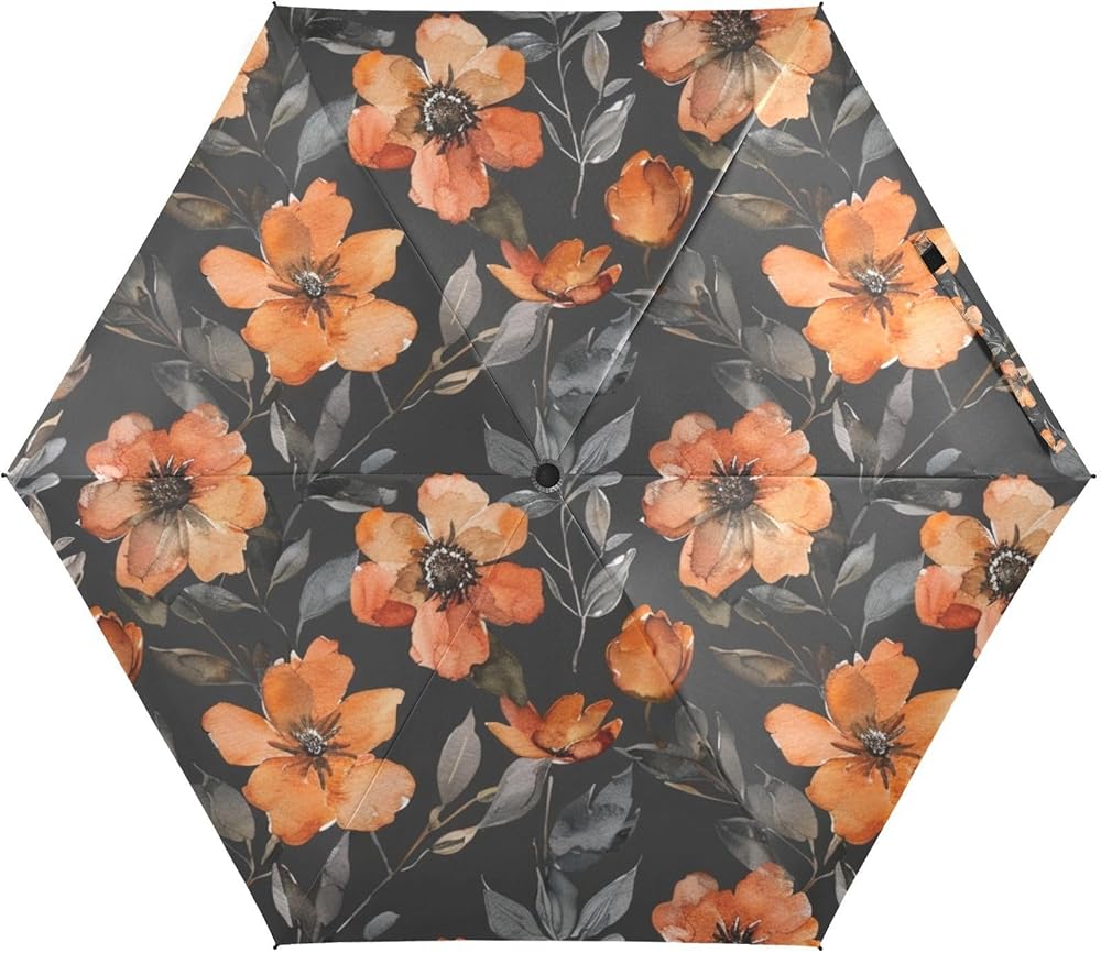 جيبوني الفراشات الداكنة مع الزهور المتفتحة مظلات سفر صغيرة للمطر، مظلة صغيرة مدمجة مقاومة للماء ومضادة للأشعة فوق البنفسجية وخفيفة الوزن وقابلة للحمل in Kuwait