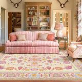 لون نابض بالحياة: السجادة العتيقة متوفرة بظل برتقالي أرجواني مذهل مزين بأوراق عائمة ومجموعات من الزهور، هذه السجادة تنضح بالفن والأناقة، مما يجعل منزلك أكثر أناقة وبريقًا