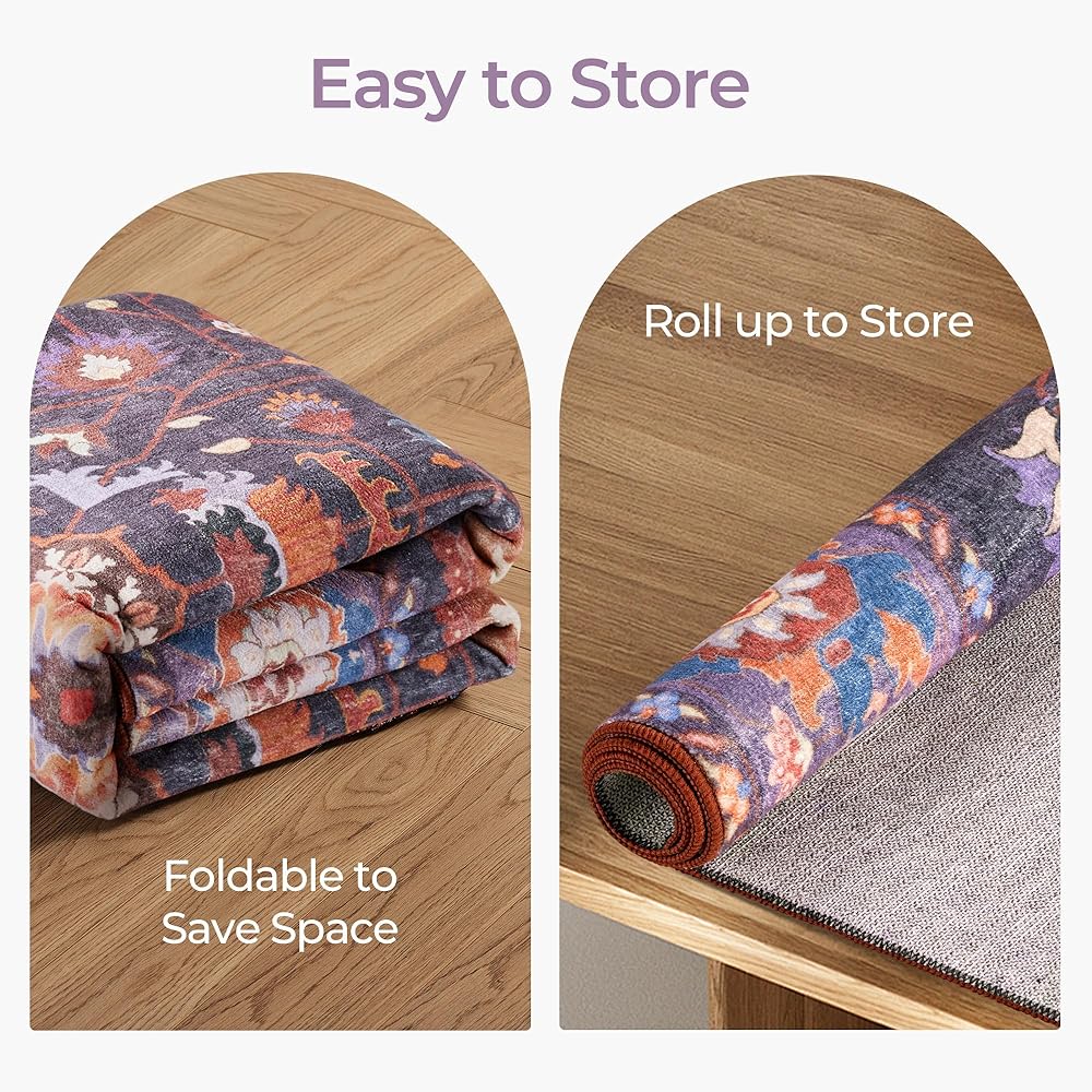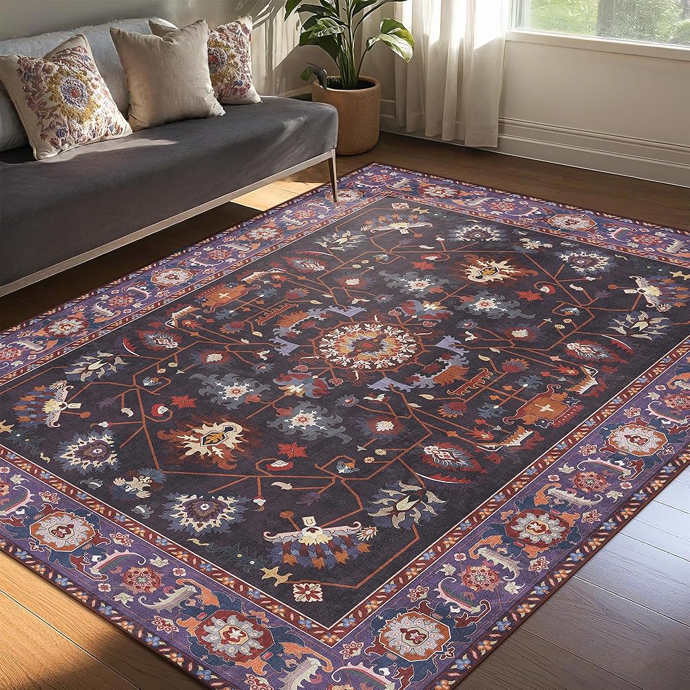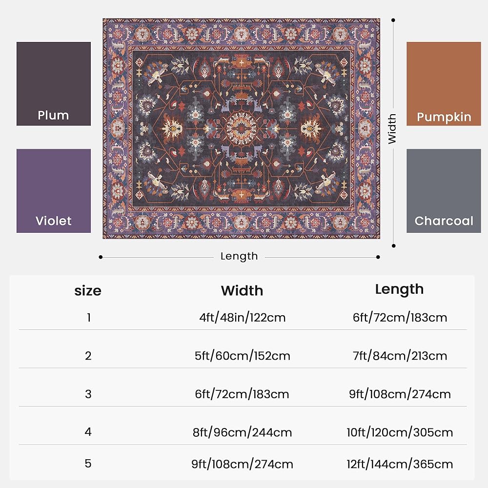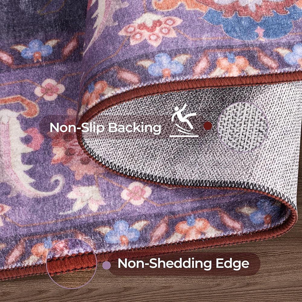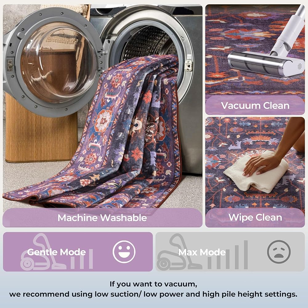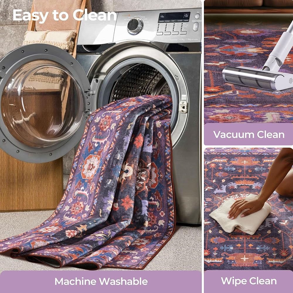 ظهر مانع للانزلاق: تم تصميم سجادتنا الكبيرة مقاس 9x12 بظهر مضاد للانزلاق قابل للغسل، مما يضمن بقاءها ثابتة في مكانها على أي نوع من الأرضيات. قم بإنشاء بيئة أكثر أمانًا لعائلتك وحيواناتك الأليفة مع سجادتنا الأرجوانية