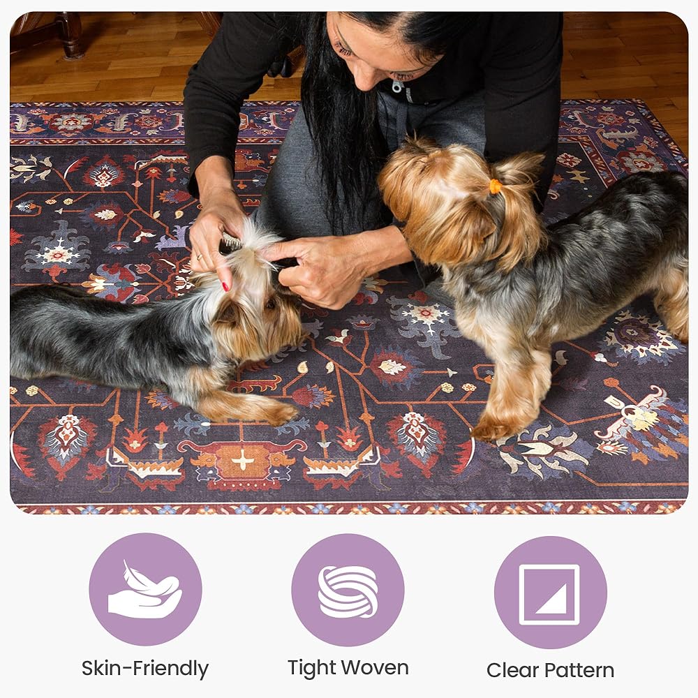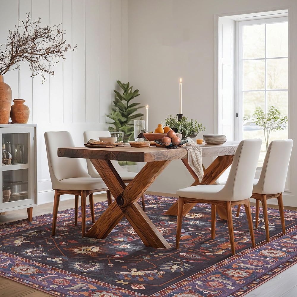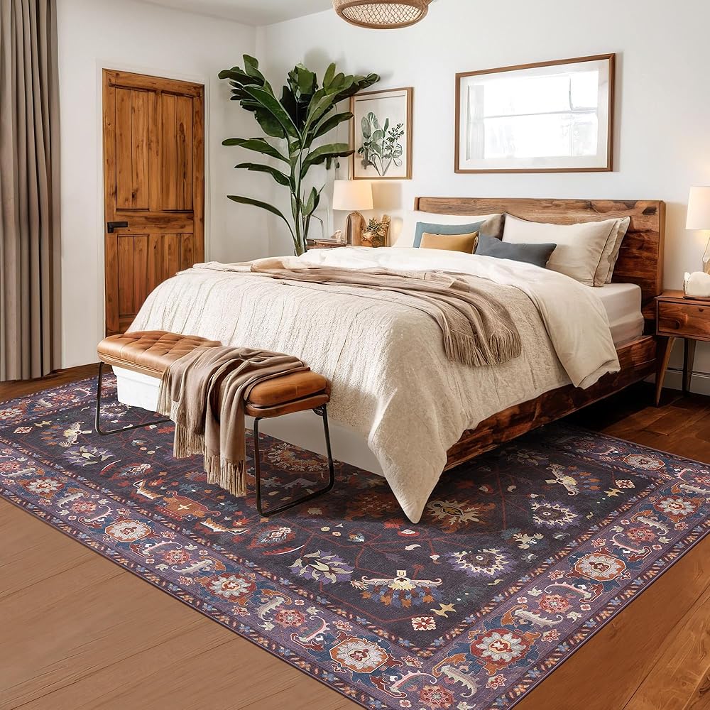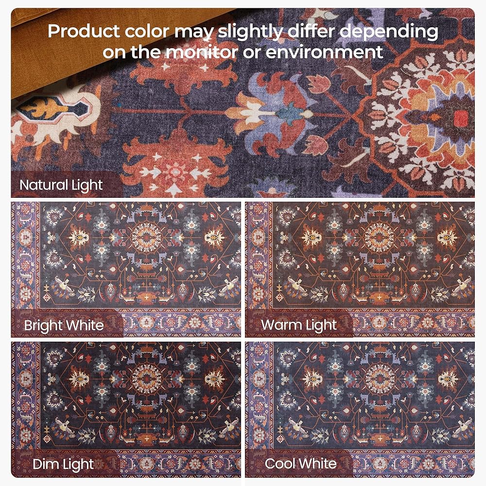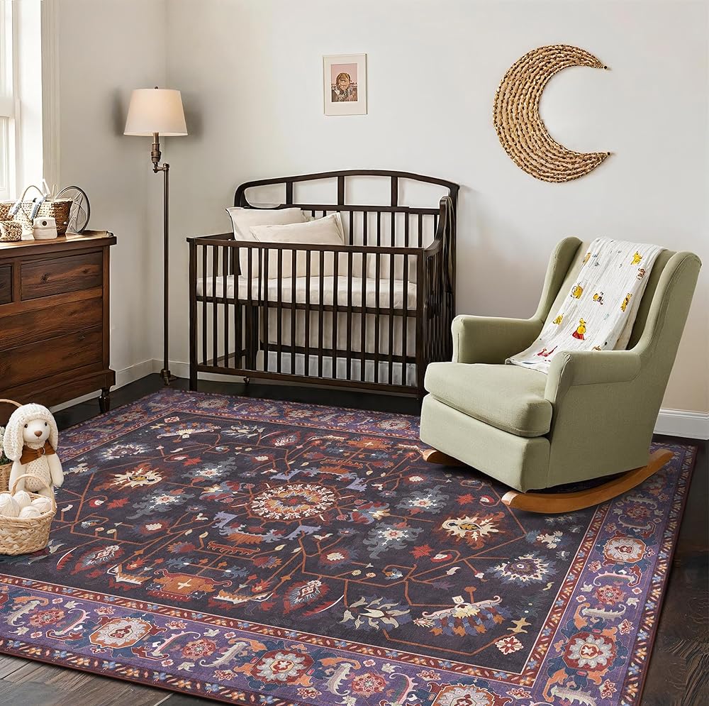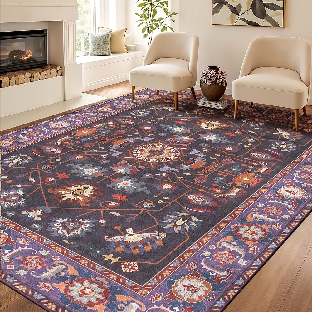 ظهر مانع للانزلاق: تم تصميم سجادتنا الكبيرة مقاس 9x12 بظهر مضاد للانزلاق قابل للغسل، مما يضمن بقاءها ثابتة في مكانها على أي نوع من الأرضيات. قم بإنشاء بيئة أكثر أمانًا لعائلتك وحيواناتك الأليفة مع سجادتنا الأرجوانية