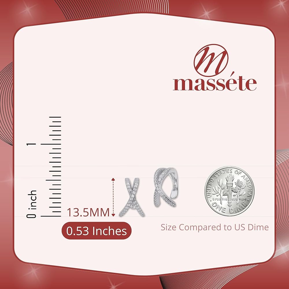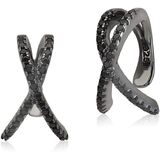 • DAZZLING AND CHIC - MASSETE sterling silver 925 entirely black rhodium plated faux conch hoop earrings criss cross with simulated black diamonds cartilage ear cuff ear hugger clip on earrings for non pierced ears