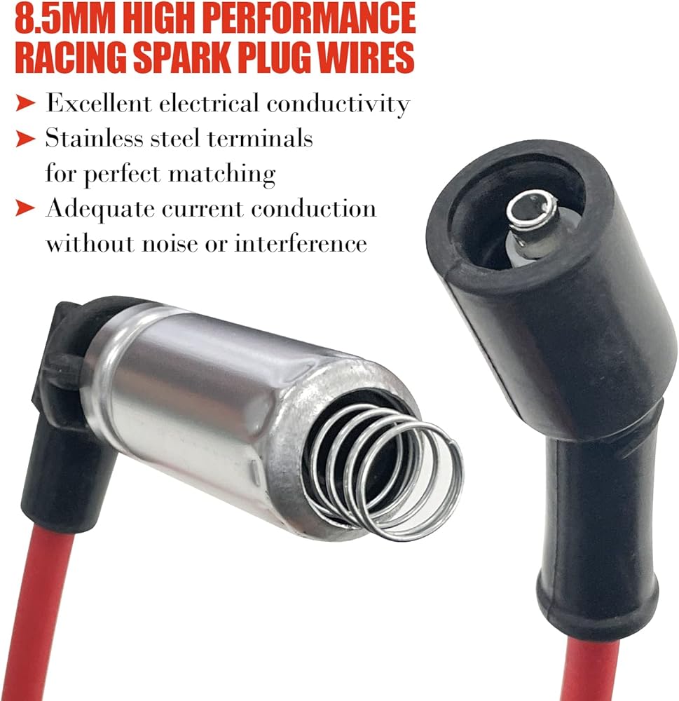 Sutekus 6.45" wire length and 8.5mm diameter spark plug wires provide maximum spark transfer.10-piece large capacity spark plug wire set fully meets the replacement needs of automotive parts.