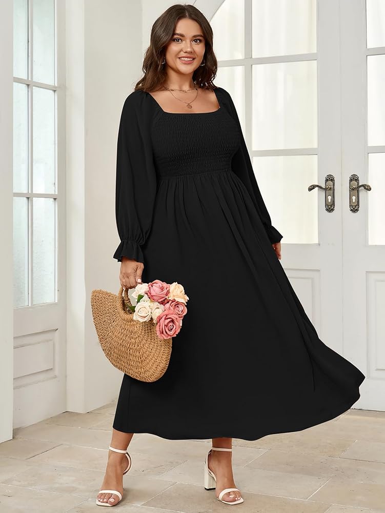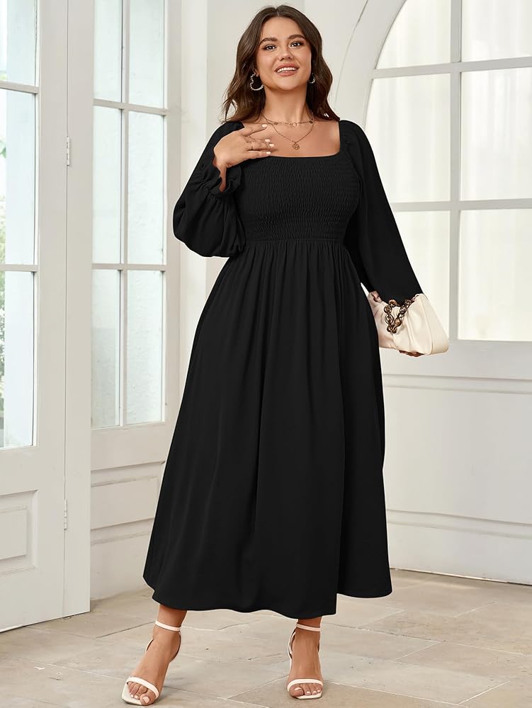 • التصميم: أكمام منتفخة وخط عنق مربع تضفي لمسة أنيقة على الفستان النسائي الطويل، مما يعزز المظهر العام بتفاصيل عصرية. جزء علوي مرن يضمن ملاءمة مريحة ومرنة، فستان متأرجح على شكل حرف A يبرز محيط خصرك مع توفير ملاءمة مريحة ومرنة. تناسب أشكال الجسم المختلفة