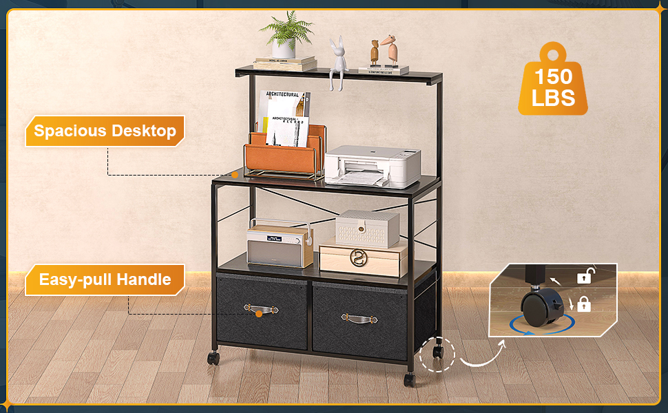 【Mobile】: This file cabinet has movable wheels, making it easy to move anywhere at any time. The two lockable casters in the front bring stability, so you don't have to worry about any problems, making this file cabinet bring more convenience to your life.