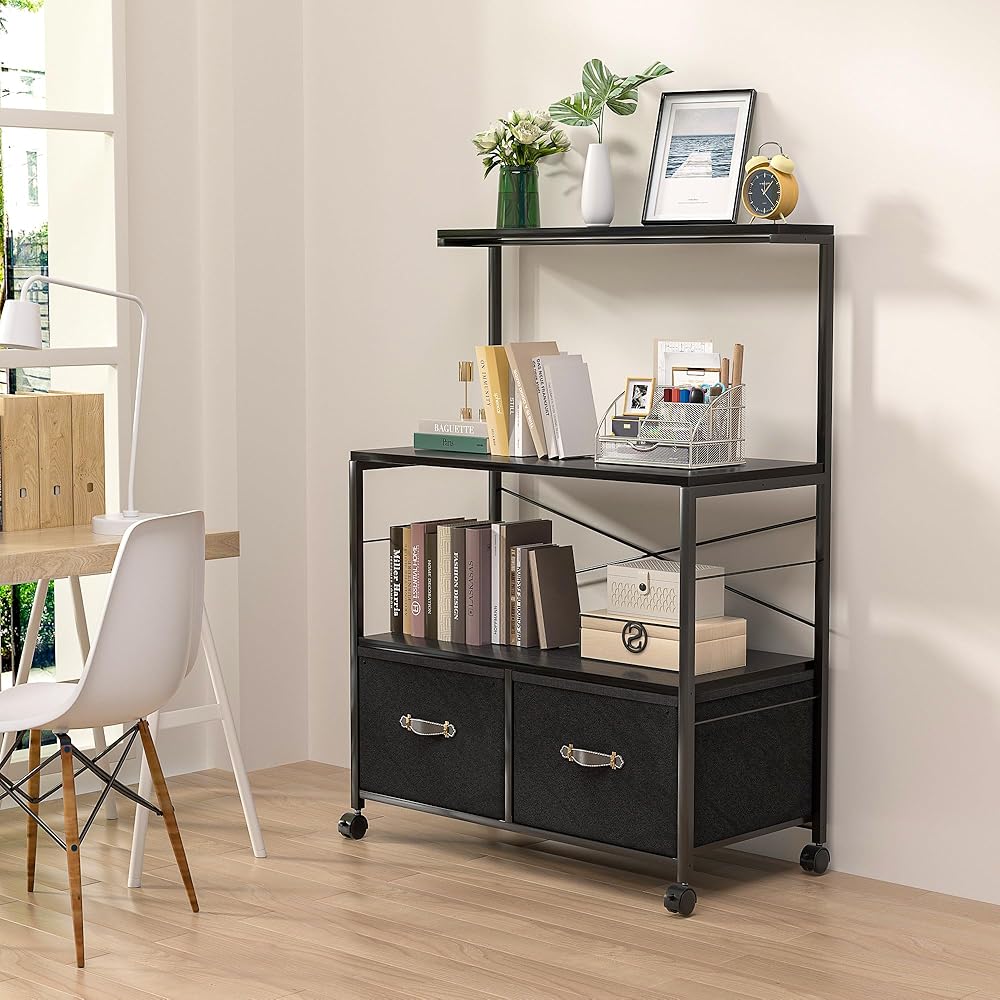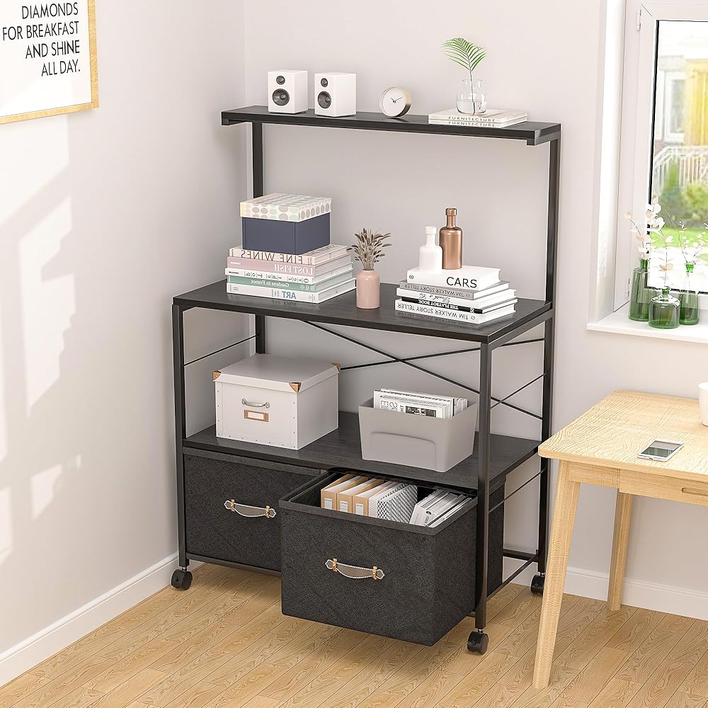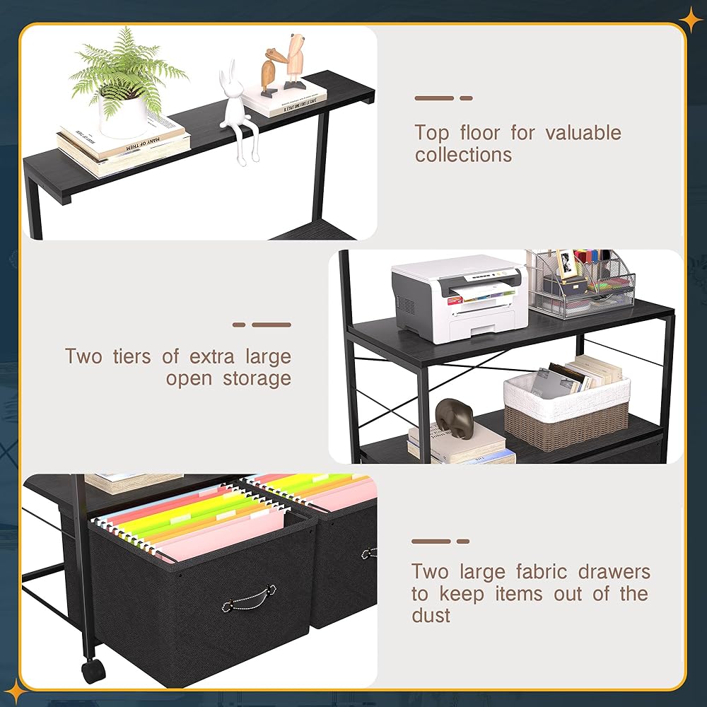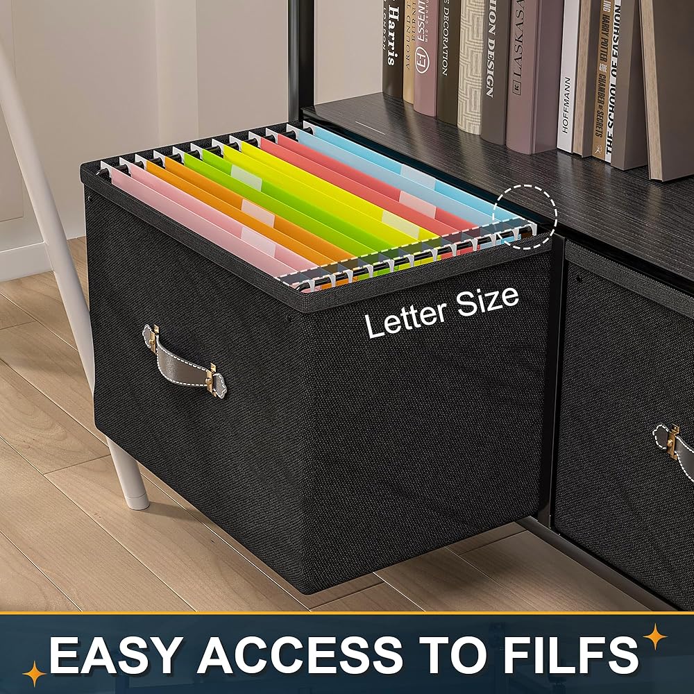 【Versatile Storage Filing Cabinet】: This lateral filing cabinet can be placed next to your desk as an extension space. With multiple storage levels, the open storage shelves give you more convenient storage space, and the strong, durable horizontal wood panels can hold office supplies such as printers, books or scanners, or serve as perfect display or decorative shelves for plants, photos, collectibles and artwork. The two bottom drawers are designed for hanging letter/A4 size file folders, which is convenient and neat at the same time.