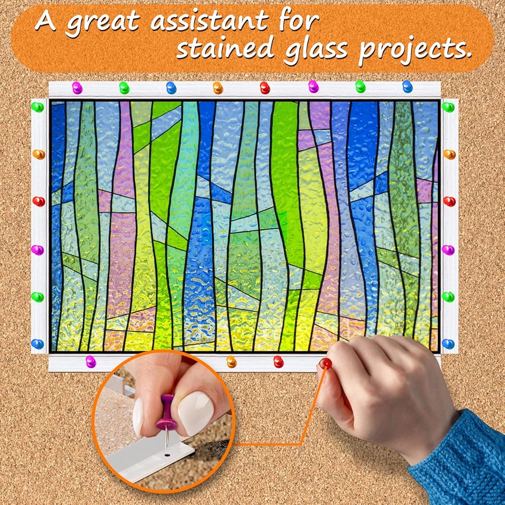 مقاوم للحرارة: سطح العمل الزجاجي الملون هذا مصنوع من مادة عازلة بسمك 1/2 بوصة وهي ناعمة وصلبة ليست مقاومة للحرارة فحسب، بل من الممكن أيضًا إدخال دبابيس رأس كبيرة لتثبيت الموضع.