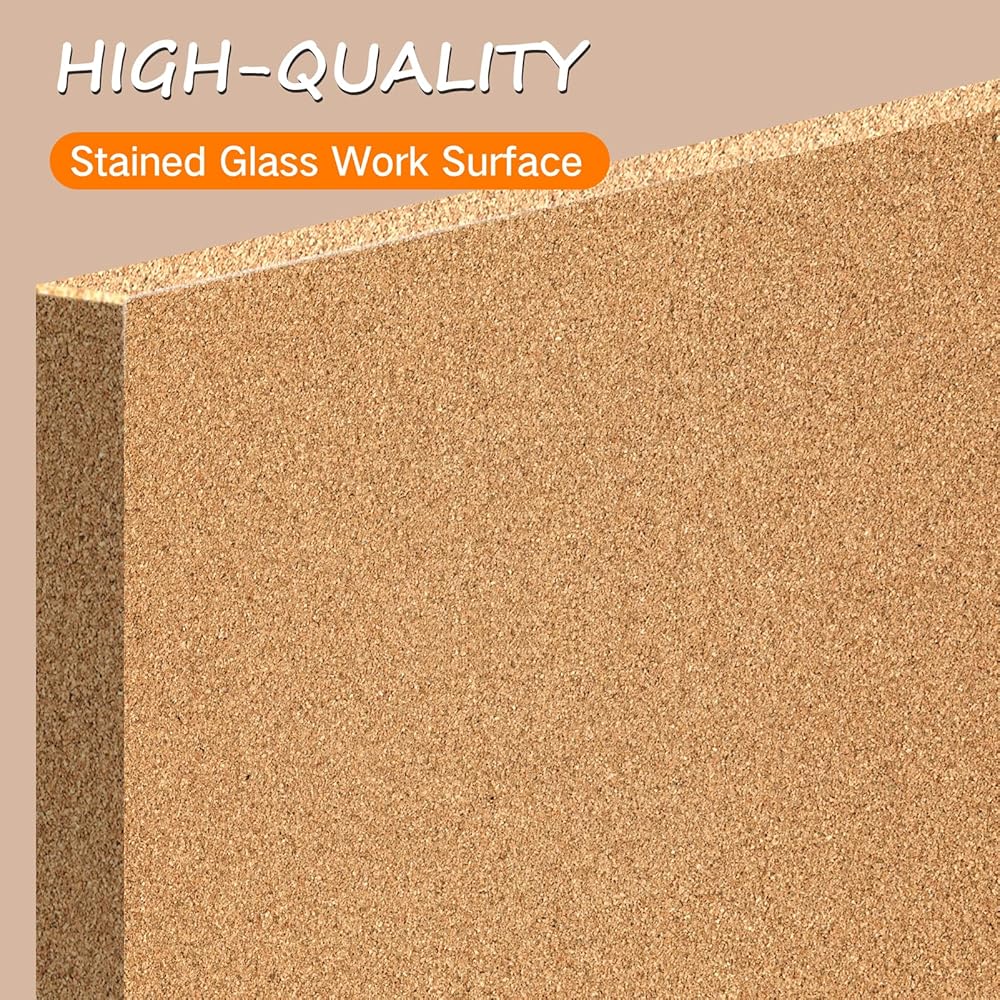 استخدام متعدد الاستخدامات: لا يقتصر هذا الزجاج الملون على مشاريع الزجاج الملون فحسب - يمكن استخدام سطح العمل هذا أيضًا كسطح عمل لحام الإلكترونيات، مما يجعله إضافة متعددة الاستخدامات لأي استوديو أو مساحة عمل.
