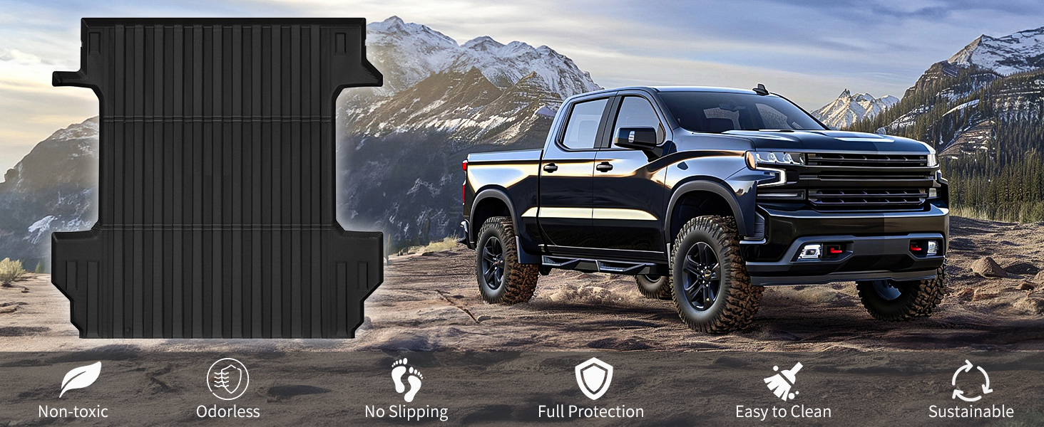 متانة لا مثيل لها: هيكل TPE عالي الكثافة معتمد من GRS يتحمل التآكل والانسكابات وأصعب الظروف؛ حصيرة سرير الشاحنة القابلة لإعادة التدوير 2019 2020 2021 2022 2023 2024 Chevy Silverado 5.8FT تعمل بشكل جيد من تحت الصفر إلى الحرارة الحارقة لتدوم لسنوات