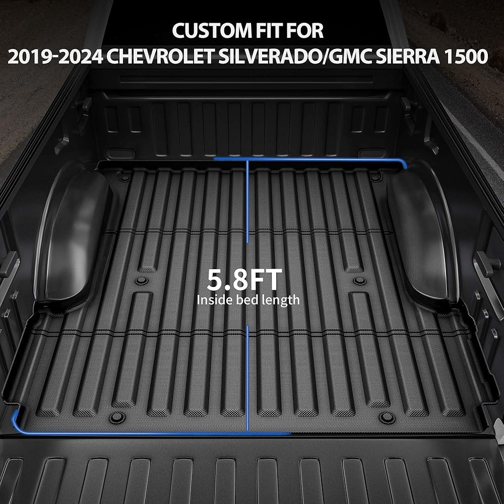 ملاءمة تشبه القفاز: بطانة سرير الشاحنة OEDRO 2019-2024 شيفروليه سيلفرادو/جي إم سي سييرا 1500 5.8FT مصممة خصيصًا بنموذج سيارة 1:1 لملاءمة سلسة، وتقليل الحركة أثناء النقل للحفاظ على المظهر الأصلي لسيارتك؛ يتضمن دعامة لاصقة إضافية للحفاظ على البطانة في مكانها بشكل مثالي