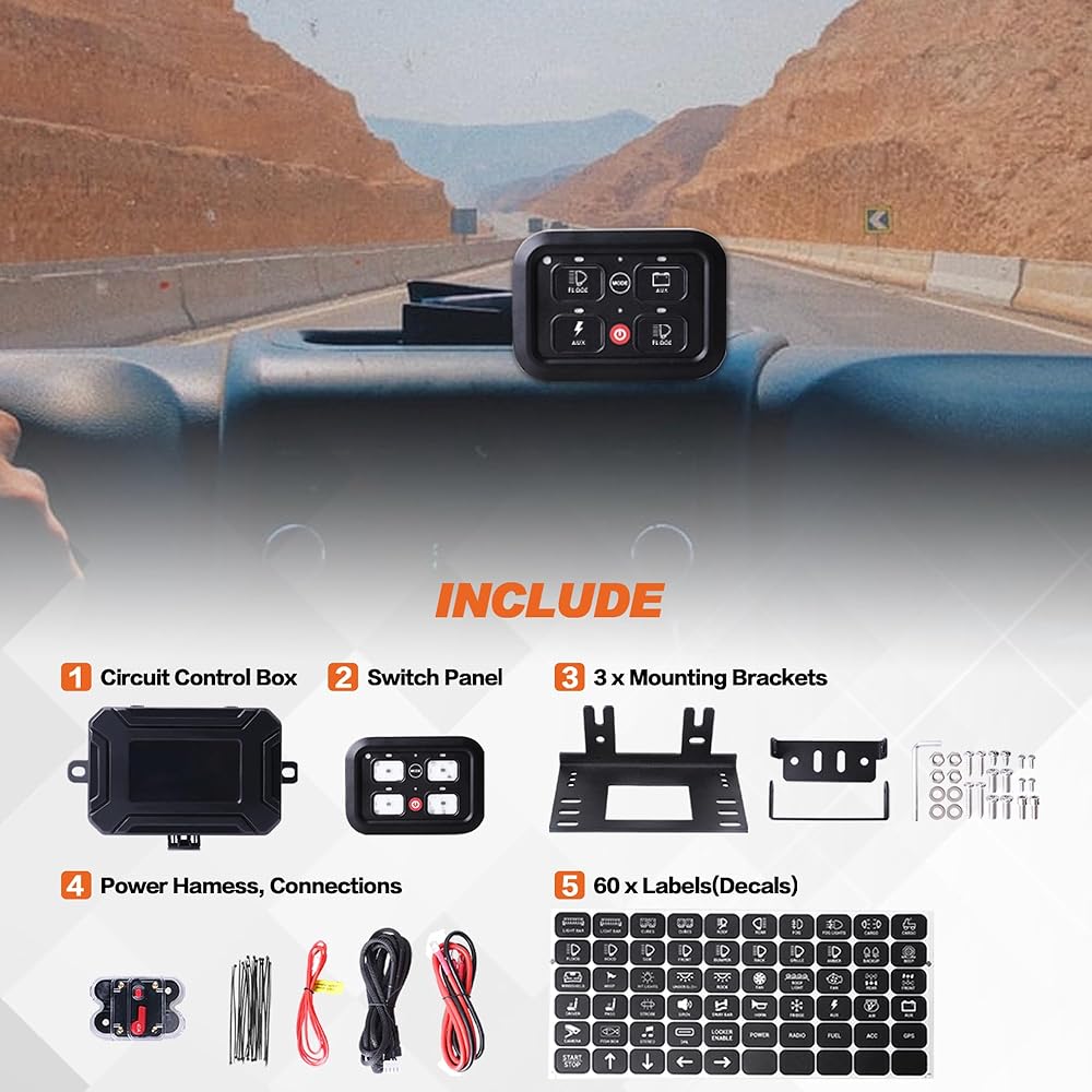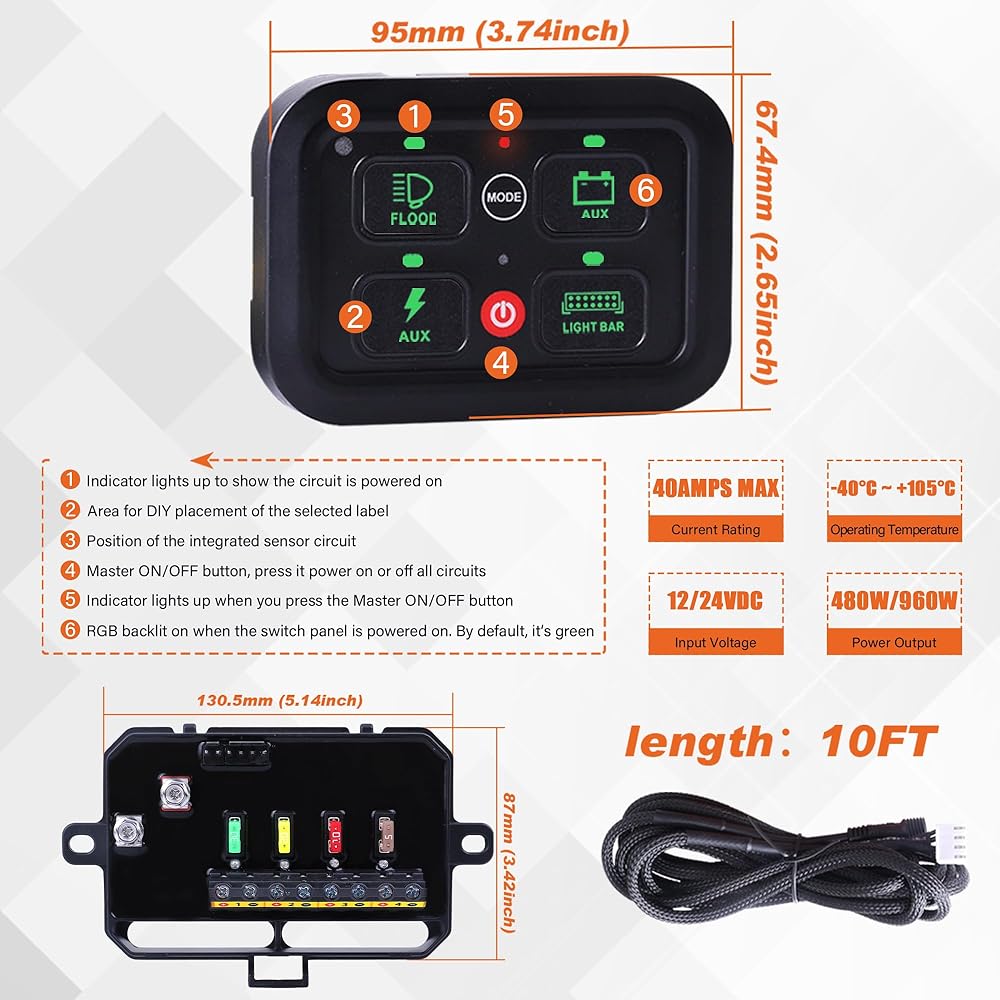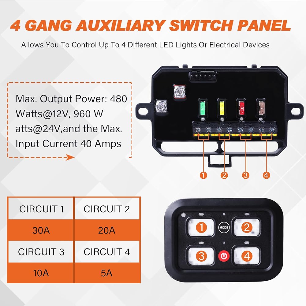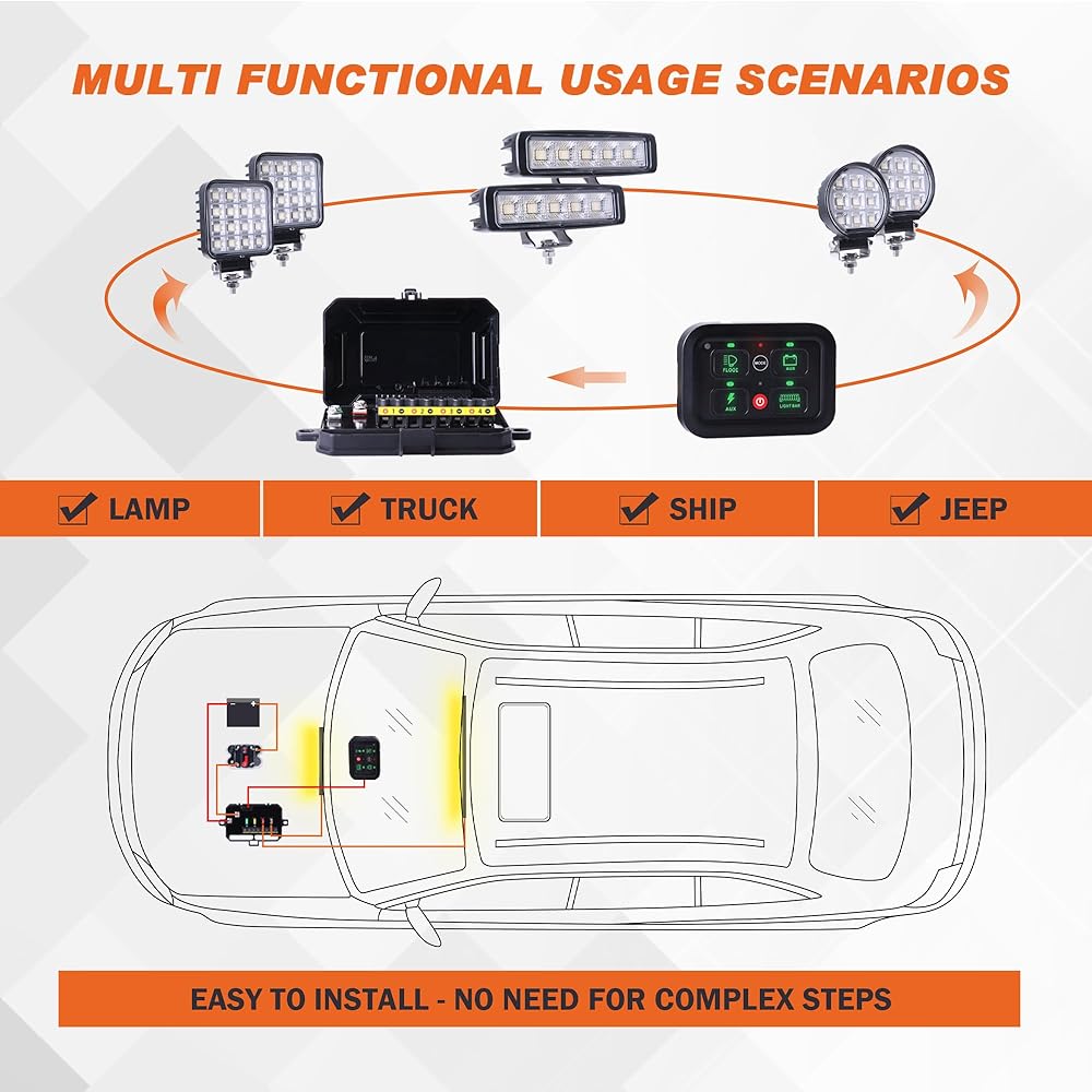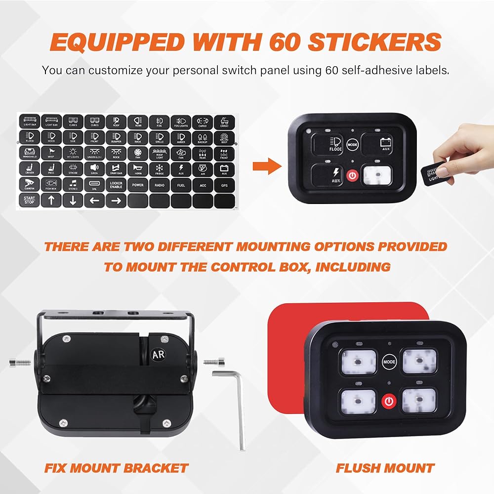 4 لوحة مفاتيح جماعية، لوحة مفاتيح سيارات 40 أمبير مع 3 أوضاع إضاءة مرحلات الحالة الصلبة المدمجة وظيفة إضاءة خلفية RGB قابلة للتعتيم التلقائي 12 فولت لوحة تحكم مقاومة للماء لشاحنة UTV البحرية