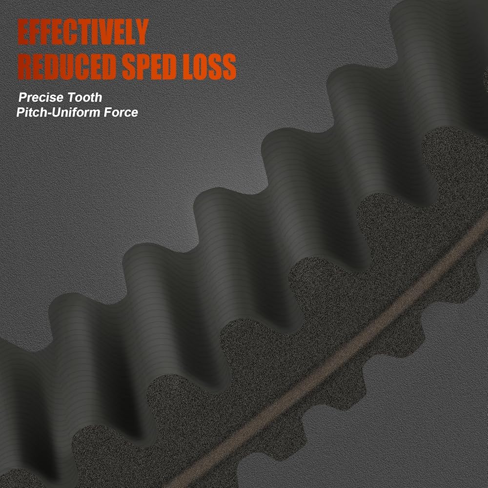 خامة عالية الجودة: ارفع مجموعة نقل الحركة الخاصة بدراجتك النارية مع هذا الحزام عالي الجودة. مصنوع من مواد متينة، وهو يوفر قوة استثنائية ومرونة وطول العمر، مما يضمن أداءً موثوقًا ميلاً بعد ميل في ظروف الركوب المختلفة.