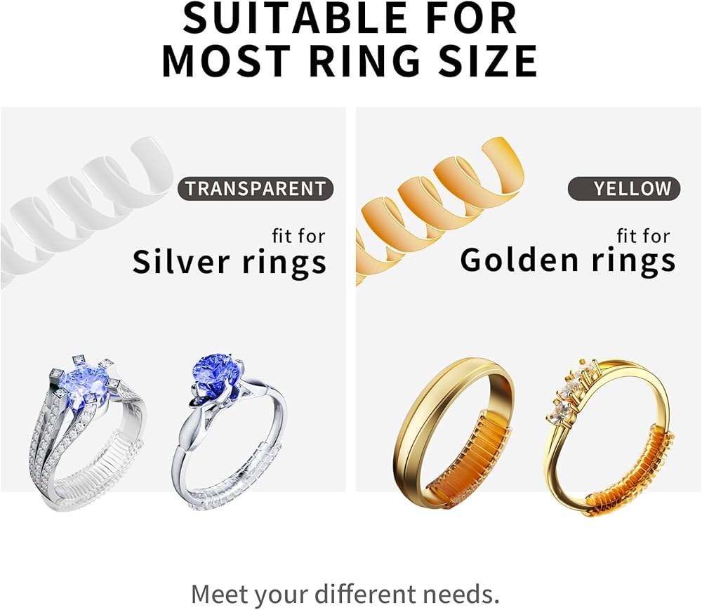 The ring size adjuster is a useful and practical tool to resolve issues like loose ring and oversize ring,you don't need to worry about losing your precious ring whatever you do, such as swimming, running, playing tennis, washing dishes or cleaning, gardening or other activities.