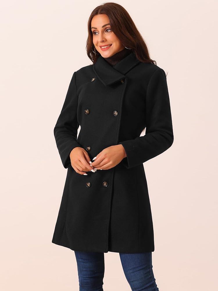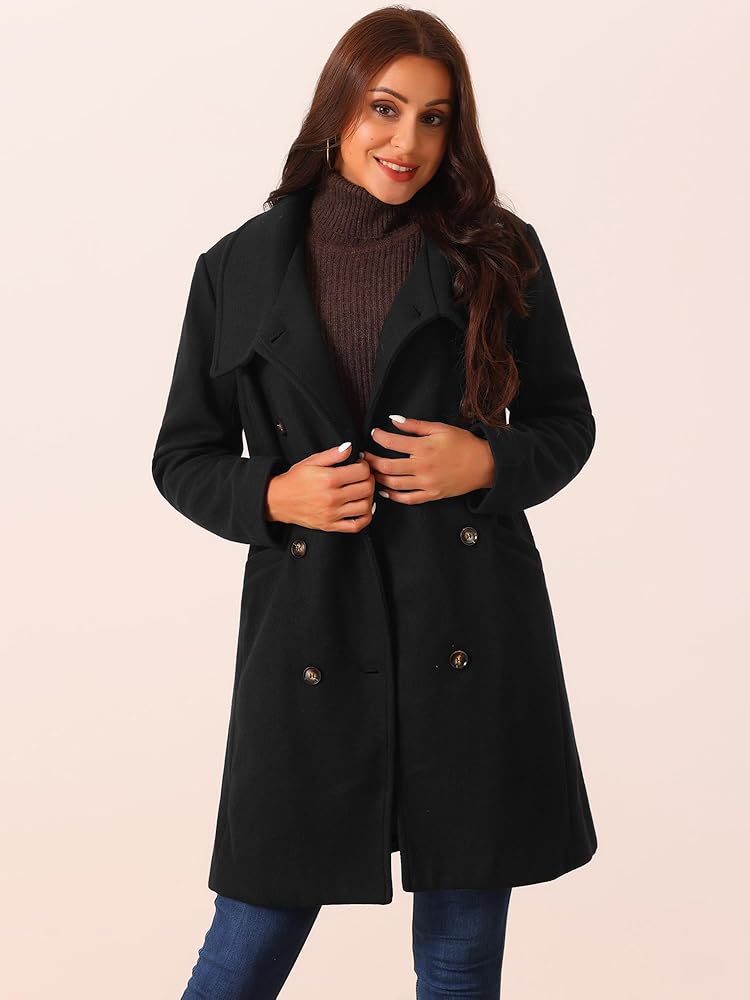- الميزات: ياقة رقبة/زر إغلاق أمامي/صدر مزدوج/جيوب/لون ثابت/معطف بازلاء أنيق/سترة كاجوال