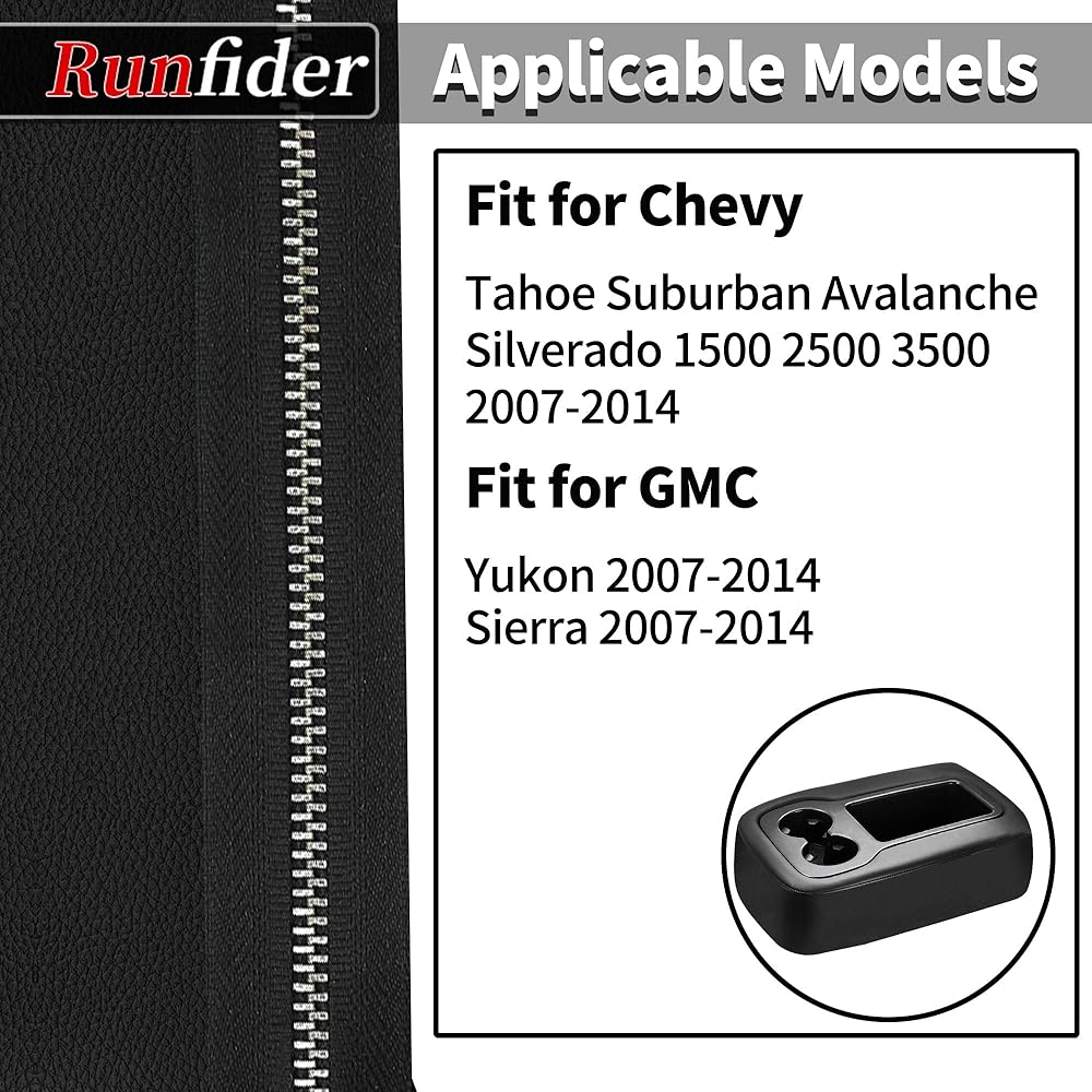 غطاء وحدة التحكم المركزية باللون الأسود مع تصميم سحاب غطاء مسند ذراع المقعد مناسب لسيارة Chevy Silverado Avalanche Suburban Tahoe GMC Yukon Sierra 2007 2008 2009 2010 2011 2012 2013 2014