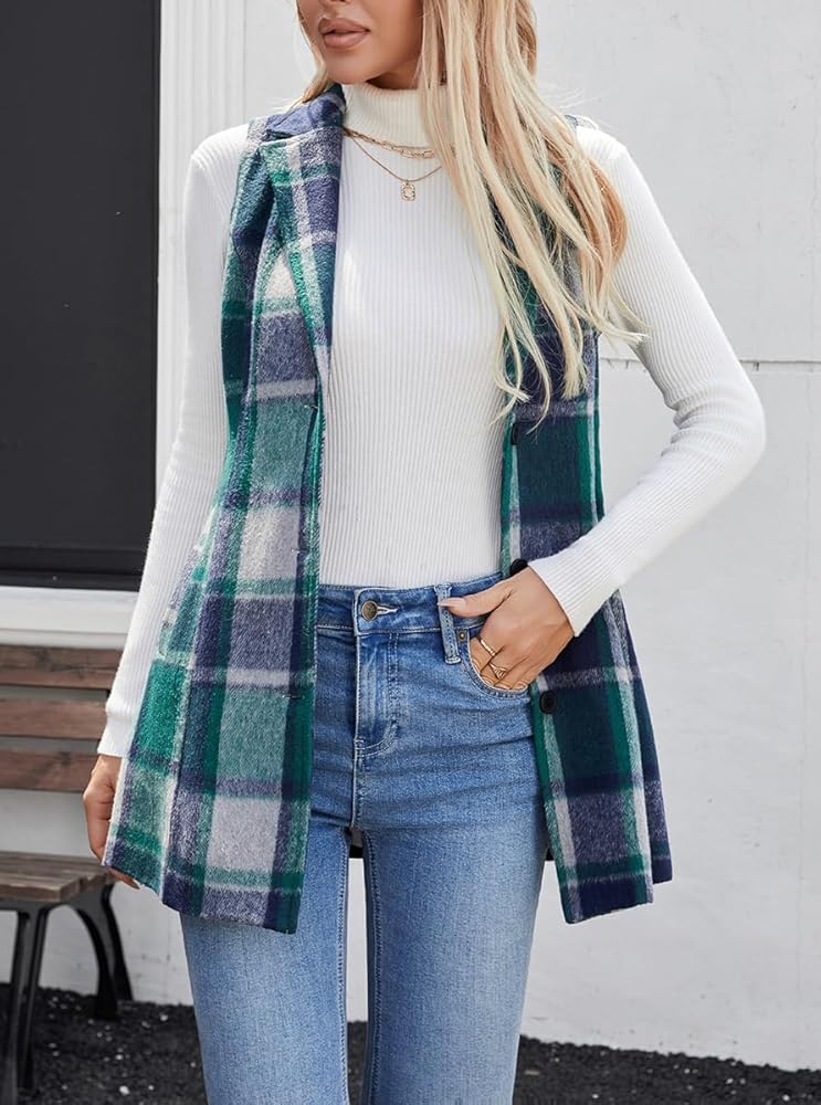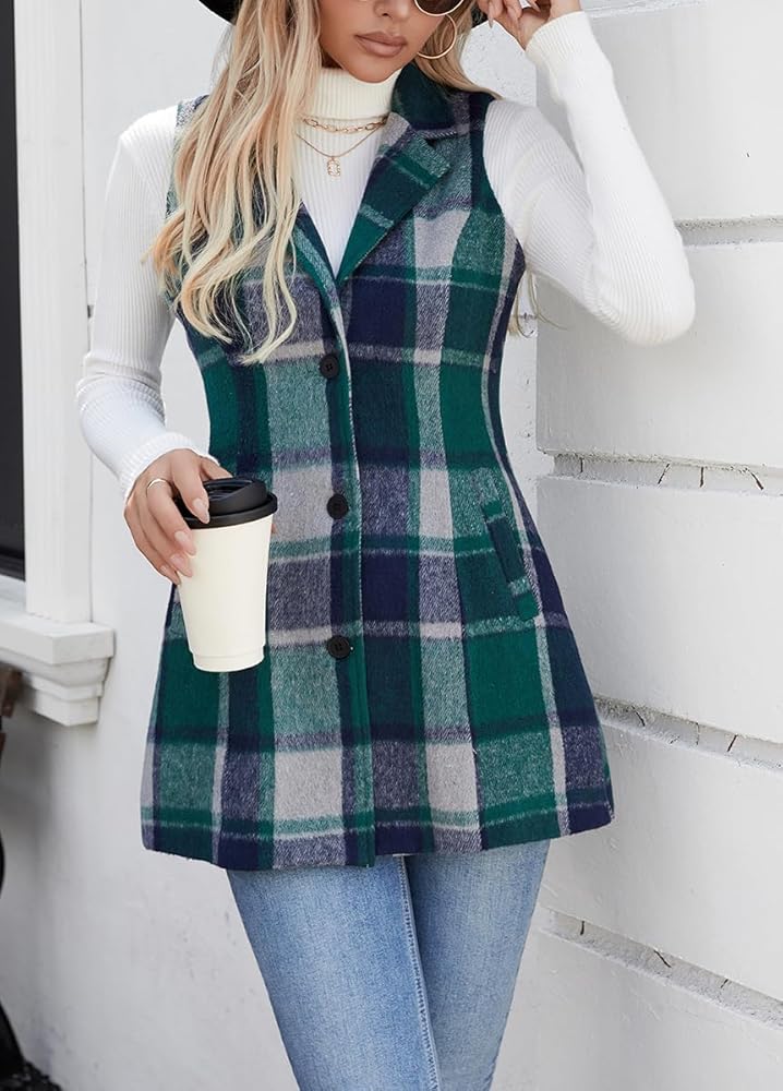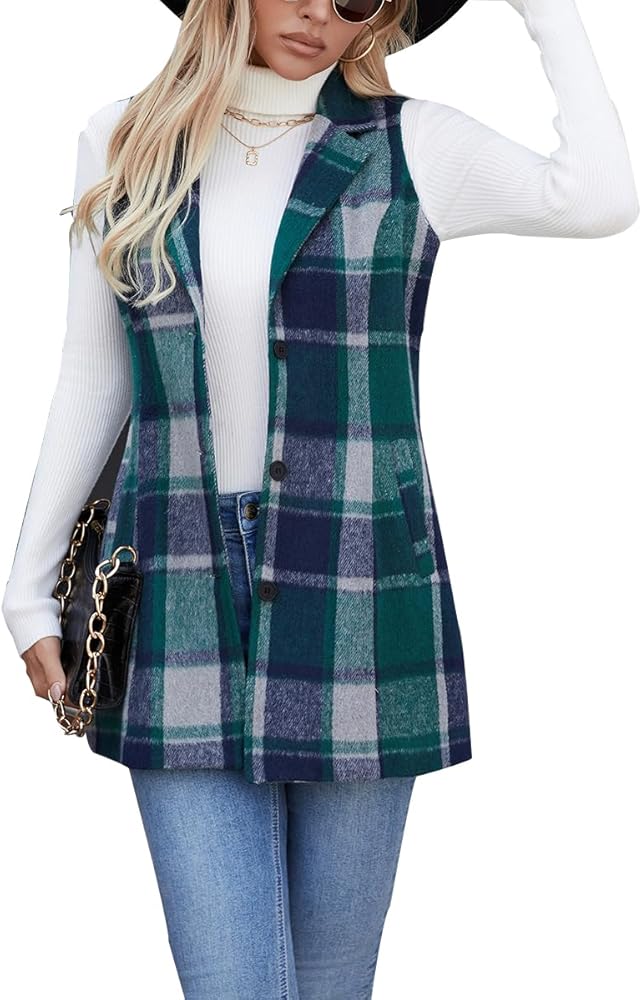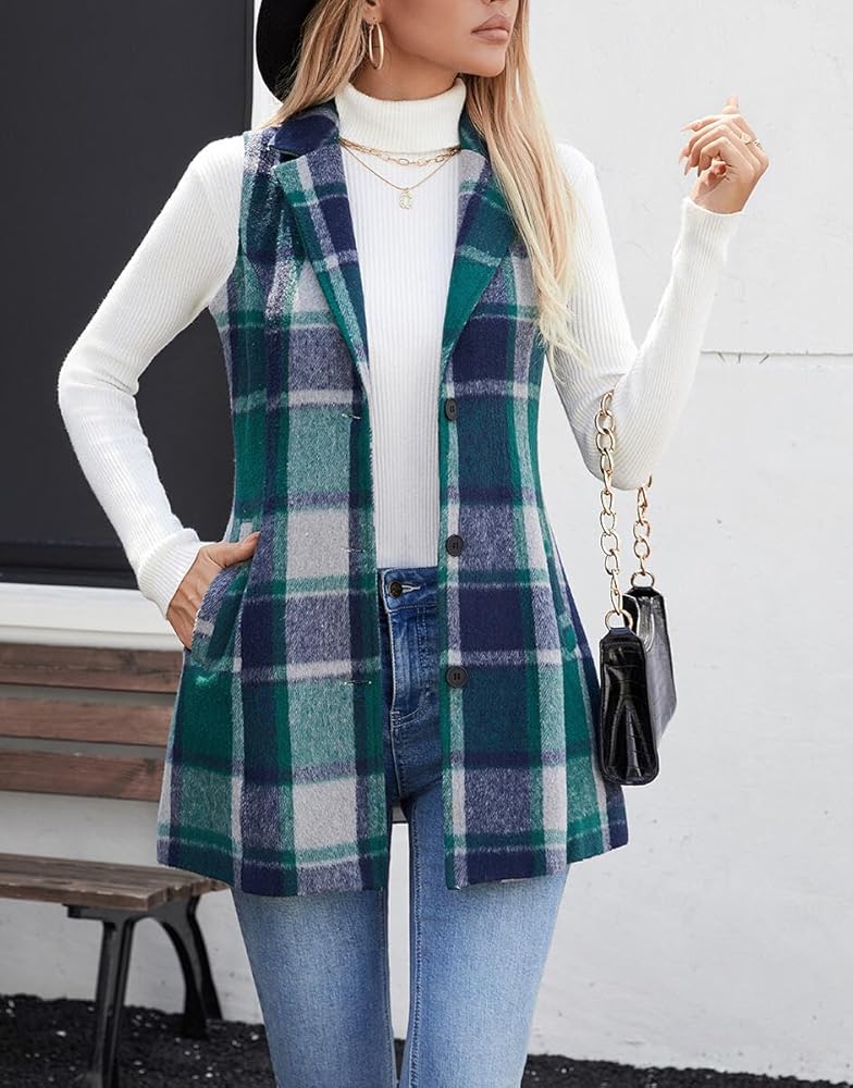 المواد: هذه السترة النسائية الطويلة المنقوشة بدون أكمام مصنوعة من نسيج الفلانيل، غير قابلة للتمدد ولكنها ناعمة ومريحة في الارتداء ومبطنة بالكامل. الجاكيت مريح وسميك، وهو الاختيار الأفضل للربيع والخريف والشتاء.