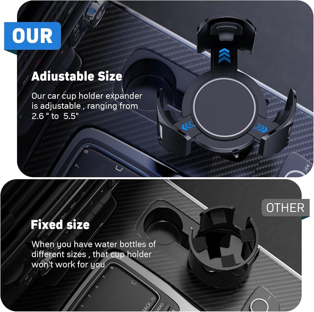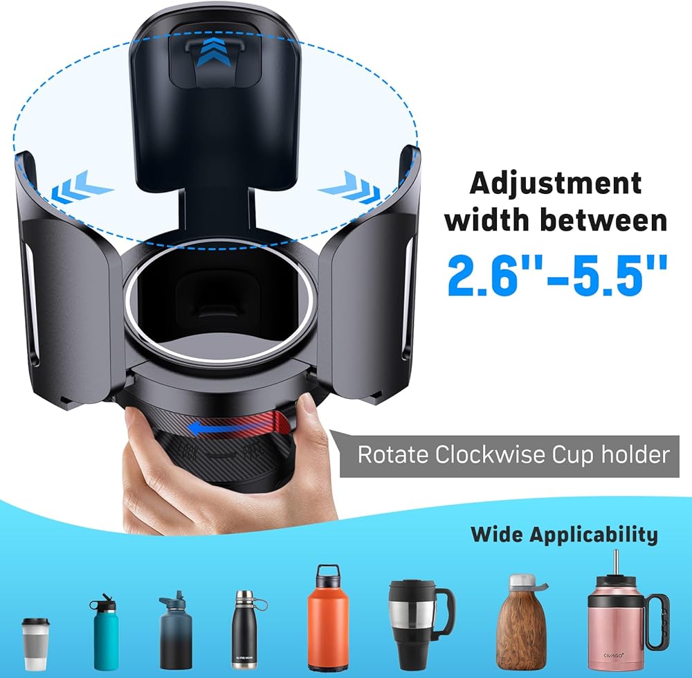 [يحافظ على الزجاجات/الكوب في مكانه] - لا تقلق بشأن تدحرج الزجاجات/الأكواب والانقلاب أثناء القيادة؛ تتميز بأذرع قابلة للتعديل في نطاق من 2.6 سم إلى 5.5 سم. تناسب حاويات المشروبات الكبيرة الأكثر شعبية من أكواب القهوة إلى الأكواب الرفيعة، وزجاجات المياه ذات الفم الواسع والمزيد؛