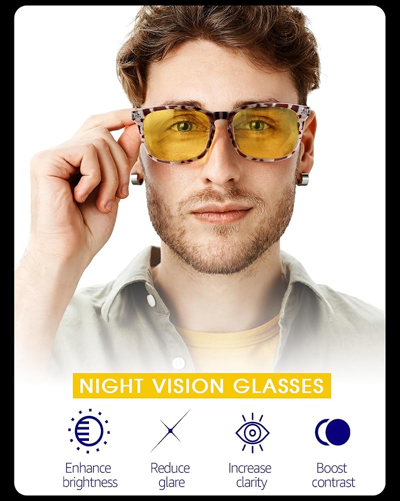 نظارات القيادة الأساسية: نظارات الرؤية الليلية TJUTR هي الخيار الأمثل لأي شخص يريد البقاء آمنًا بينما يبدو جيدًا على الطريق. سواء كنت تقود في الليل أو الضباب أو في يوم ممطر، فإن هذه النظارات ستوفر لك الحماية والأناقة التي تحتاجها للبقاء واثقًا ومرتاحًا خلف عجلة القيادة.