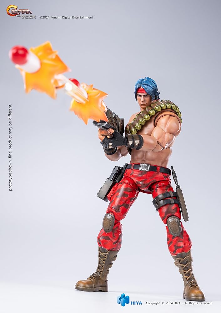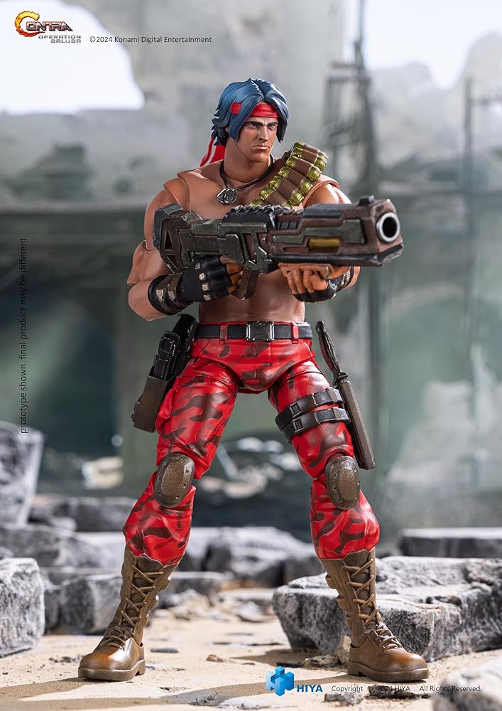 From Hiya Toys. A PREVIEWS Exclusive! Hiya Toys is proud to announce the EXQUISITE BASIC Series Lance Bean 1/12 scale action figure from Contra: Operation Galuga. Set in the year 26XX AD, the Galuga Archipelago off the coast of New Zealand becomes ground zero for a mysterious meteor shower, later invaded by the Red Falcon terrorist group. With strange gravity waves detected, the Earth Marine Corps dispatches elite Contra unit soldiers Bill Rizer and Lance Bean to neutralize the threat. Standing 6.2" tall, the Lance Bean figure captures his classic look from the game, featuring shirtless attire and red camo pants. The figure is designed with multiple articulated joints for dynamic posing and comes with iconic accessories like a rifle, storable pistol and dagger, Flying Capsules, and the Homing Gun and Flame Thrower symbols with effect parts, allowing for a perfect recreation of in-game weapon effects.