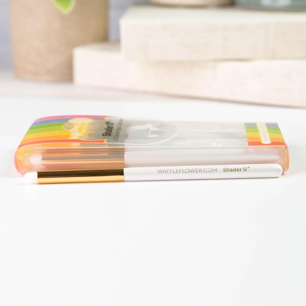 Made from high quality, ultra soft bristles, the Waffle Flower Shader 0+ brushes are round tip brushes with bristles arranged at an angle for comfort and precision. For best results, apply in a "drag-n-lift" or "flicking" motion. As the name suggests, the plus versions allow you to apply a dense layer of ink, very quickly. We designed the original shader brushes for adding colors gradually, you can build up the density by applying multiple layers of ink. As for the new plus versions, they can help you color in really quickly, especially when using stencils. We recommend dedicating each brush to similar colors and dab off the excess ink on some scrap paper in between usage. These brushes are also washable with mild soap and under running water - be sure to keep the brushes pointing down to avoid water running into the barrel. Wooden handle might expand that could cause cracks on the paint during temperature/humidity change. What's Included 15 x Shader 0+ (1/4" slanted round tip)