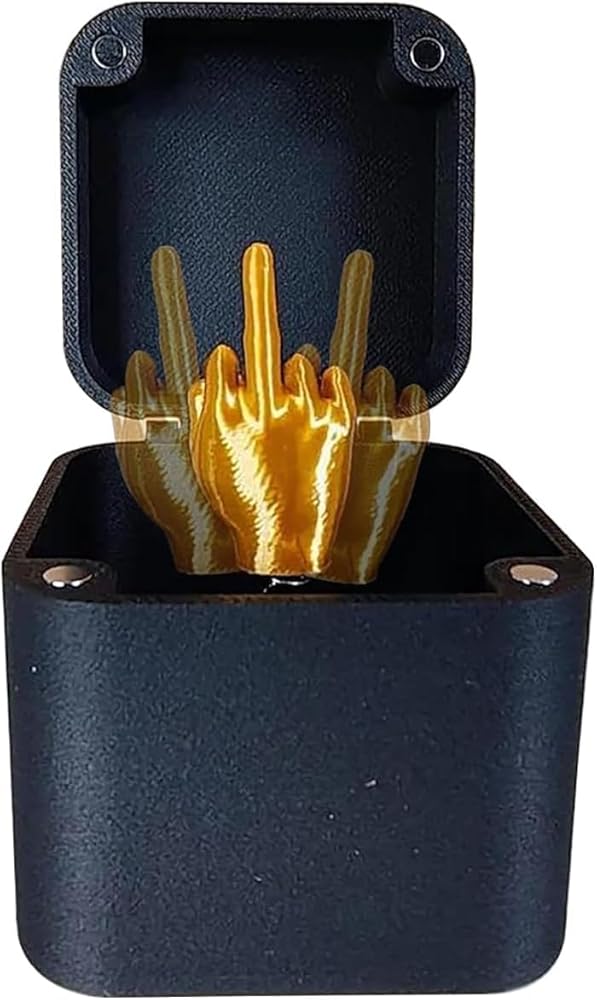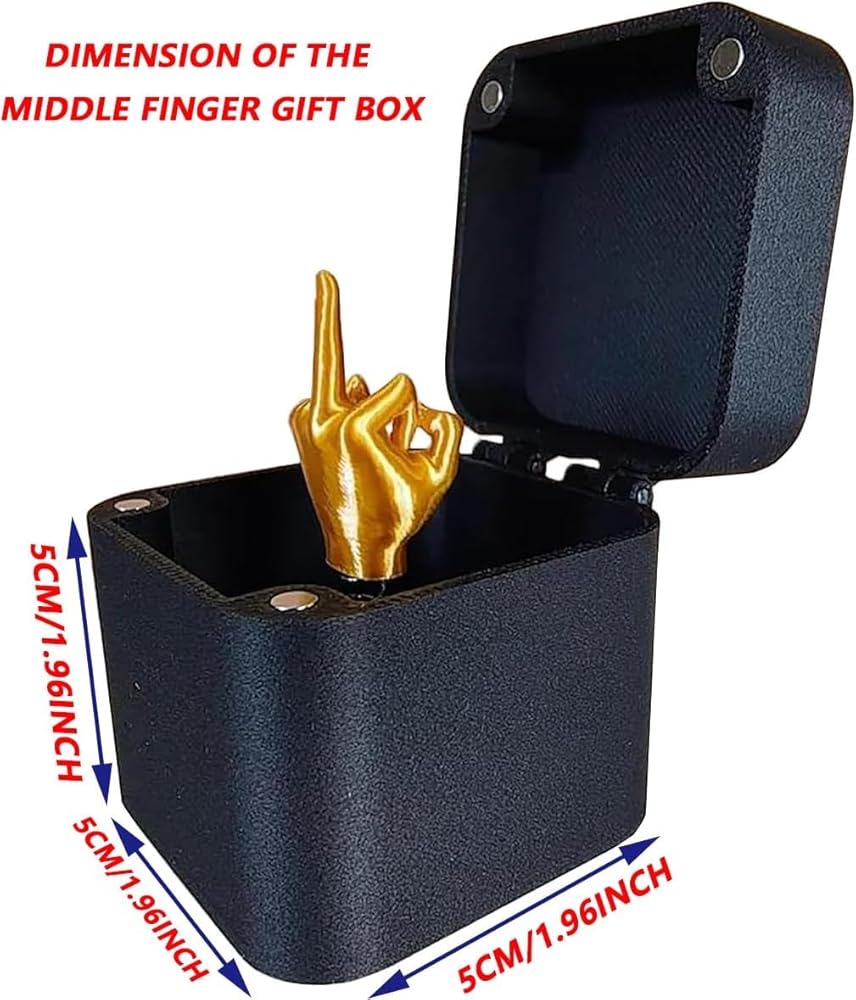 Featuring an interactive pop-up middle finger, it's a hilarious way to prank friends, family, or colleagues. The small size makes it easy to take anywhere, while its well-crafted design ensures durability. A great desktop decoration or fun gift for those who enjoy a good laugh, this box adds a playful twist to any environment.