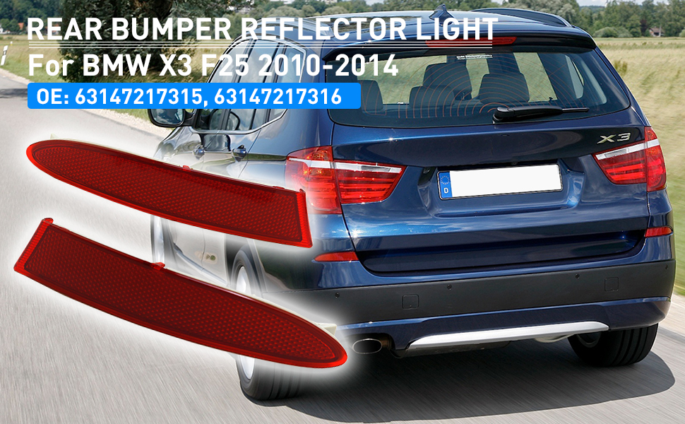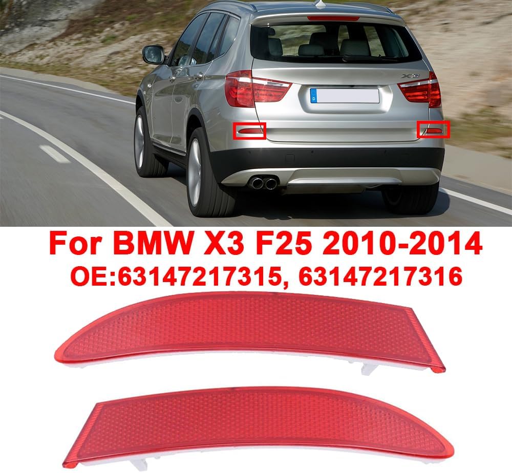 1 زوج X3 F25 2011-2014 المصد الخلفي عاكس أحمر 63147217315 63147217316 عاكسات الضوء الخلفي ملحق مناسب لـ X3 F25 2011-2014. (يسار ويمين)